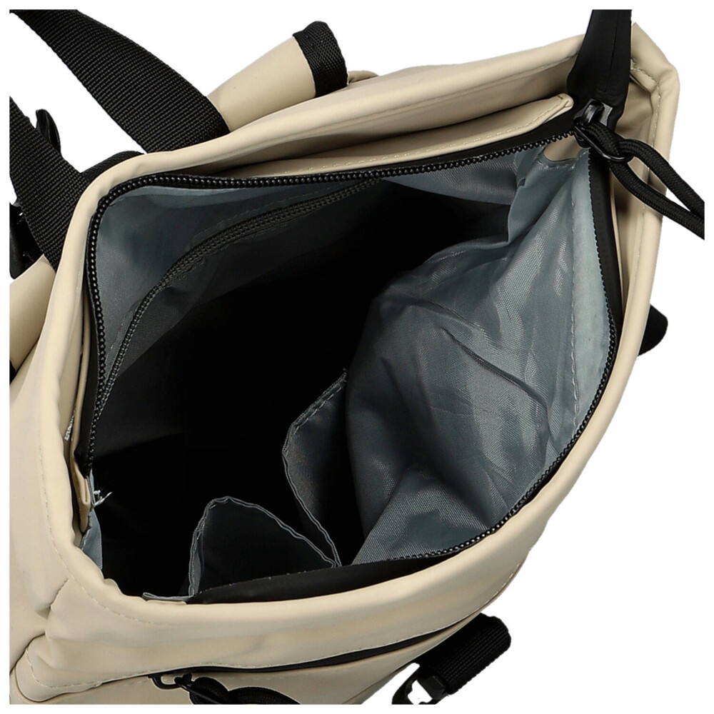 Buďte pripravení na každý deň s týmto študentským batohom v modernom roll-up štýle! Pogumovaný syntetický materiál je vodeodolný a chráni všetky vaše veci, zatiaľ čo hlavné vrecko na zips s plastovou prackou dodáva bezpečie aj trendy vzhľad. Predné zvislé vrecko a zadné vrecko ponúkajú rýchly prístup k drobnostiam a vo vnútri nájdete praktické vrecká v podšívke. Široké nastaviteľné popruhy a pevné ucho zaisťujú pohodlie pri nosení do školy aj na výlety. Štýlový, funkčný a pripravený stať sa vašim každodenným spoločníkom! Objednajte ešte dnes a vyskúšajte, vrátiť ho môžete až do 30 dní!