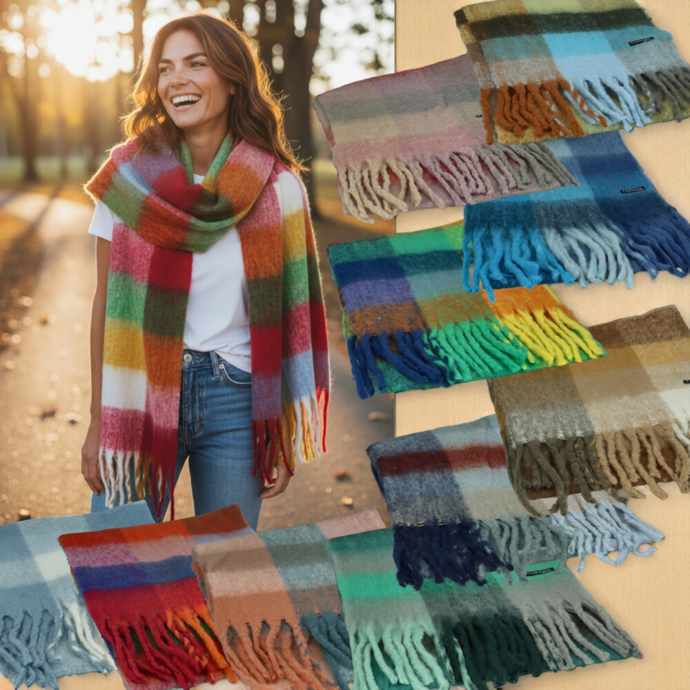 Zahaľte sa do farebnej mozaiky tepla! Tento šál v kockovanom dizajne spája rôzne tóny do harmonického vzoru, ktorý je rovnako veselý ako pohodlný. Jemný kašmír sa snúbi s mäkkým akrylom, takže každé objímanie zimného dňa je ako pohladenie. Konce zdobia ľahké strapce, ktoré dodávajú šálu hravý rytmus. Perfektný k džínsom, kabátu aj šťastnej nálade. Objednajte ešte dnes a vyskúšajte, vrátiť ju môžete až do 30 dní!