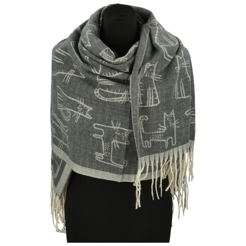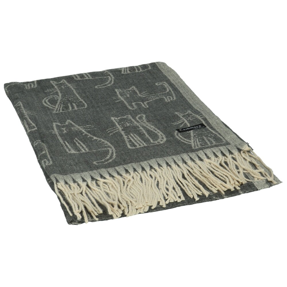 Roztomilý obojstranný šál z kašmíru s prímesou akrylu poteší všetky milovníčky mačiek aj originálnych doplnkov. Po celom šále ju zdobí hravý motív mačiek. Z jednej strany vyniká tmavý podklad so svetlými siluetami, z druhej sa farby obrátia a vzniká jemnejší, svieži efekt. Biele strapce na koncoch krásne kontrastujú s farbami šálu a dodávajú jej ľahkosť aj šmrnc. Mäkká, hebká a hrejivá, ideálny spoločník do chladných dní s nádychom hravej elegancie. Objednajte ešte dnes a vyskúšajte, vrátiť ju môžete až do 30 dní!