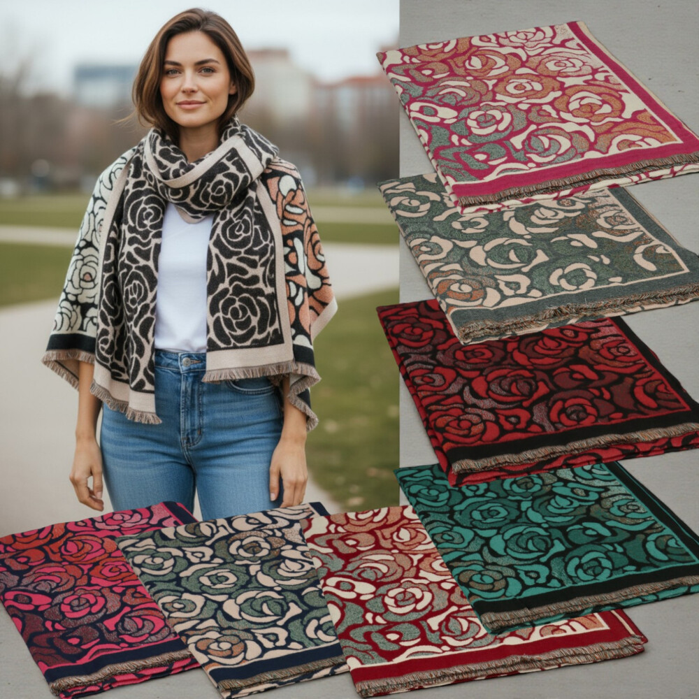 Štýlový obojstranný šál s kvetinovým vzorom prináša dokonalú kombináciu elegancie a pohodlia. Z jednej strany pôsobia výraznejšie vďaka tmavému podkladu, z druhej septembra svetlejšími a farebnejšími tónmi, môžete ju tak nosiť zakaždým inak. Zmes vlny a akrylu zaručuje mäkkosť, hrejivosť aj dlhú životnosť. Krátke strapce na okrajoch dodávajú šálu jemný a ženský dotyk. Ideálny doplnok, ktorý zaujme na prvý pohľad a skvele doplní kabát aj sveter. Objednajte ešte dnes a vyskúšajte, vrátiť ju môžete až do 30 dní!