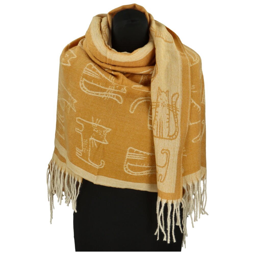 Roztomilý obojstranný šál z kašmíru s prímesou akrylu poteší všetky milovníčky mačiek aj originálnych doplnkov. Po celom šále ju zdobí hravý motív mačiek. Z jednej strany vyniká tmavý podklad so svetlými siluetami, z druhej sa farby obrátia a vzniká jemnejší, svieži efekt. Biele strapce na koncoch krásne kontrastujú s farbami šálu a dodávajú jej ľahkosť aj šmrnc. Mäkká, hebká a hrejivá, ideálny spoločník do chladných dní s nádychom hravej elegancie. Objednajte ešte dnes a vyskúšajte, vrátiť ju môžete až do 30 dní!
