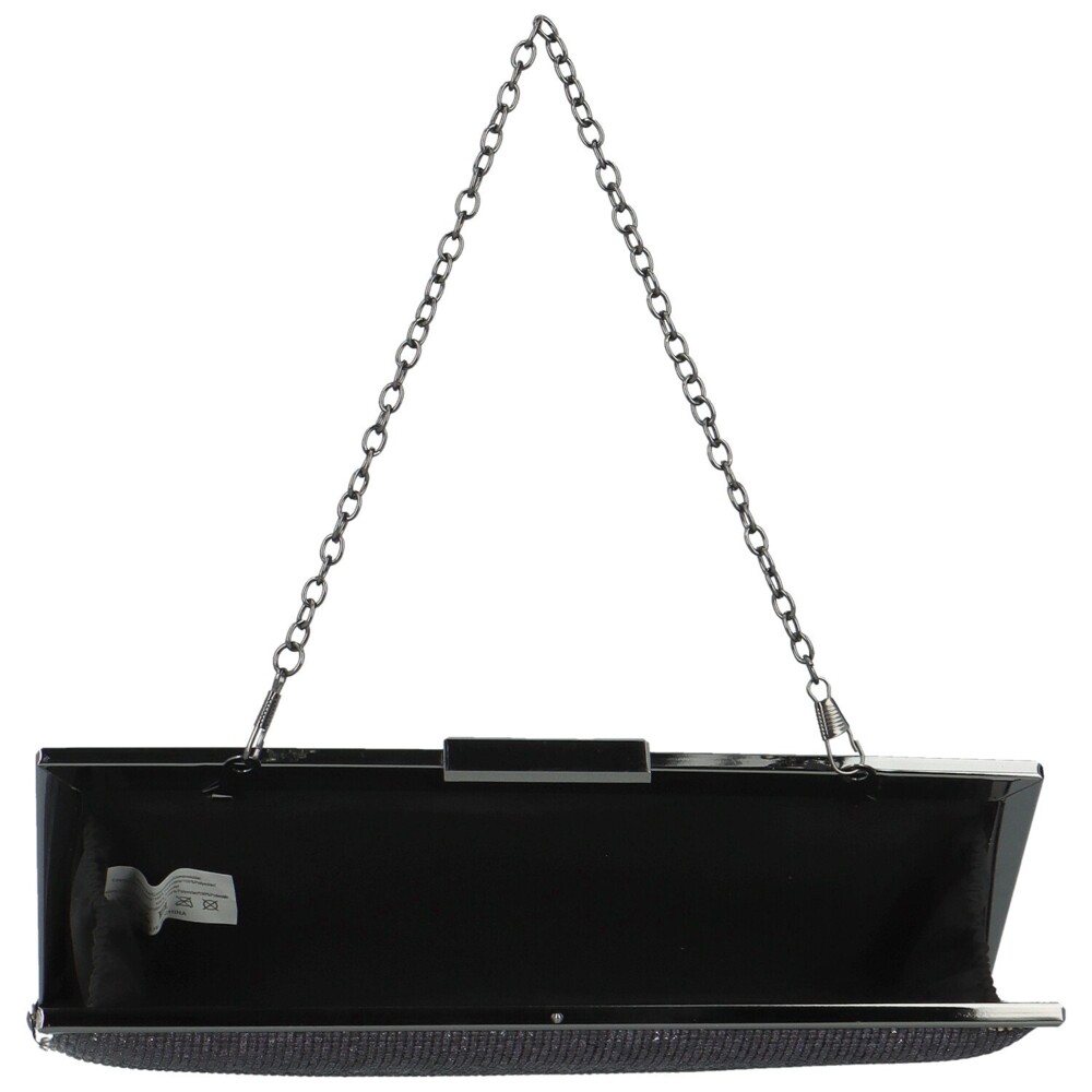 Dámska čierna listová kabelka od Michelle Moon. Tento typ kabelky je obľúbený predovšetkým na spoločenské udalosti, ako sú plesy, večierky alebo svadby. Má pevnú obdĺžnikovú konštrukciu. Povrch je bohato zdobený mini trblietavými kamienkami, ktoré vytvárajú luxusný dojem. Kovový rámček dodáva kabelke sofistikovaný vzhľad a zároveň poskytuje pevné uzatváranie vo forme zacvakávacieho zámku. Kabelka má dve retiazky v rôznych dĺžkach, ktoré umožnia nosenie cez rameno. Retiazky môžete odopnúť a vziať si kabelku do ruky. Vo všetkých prípadoch bude vyzerať skvele. Tak objednajte ešte dnes a vyskúšajte! Vrátiť ho môžete do 30 dní.