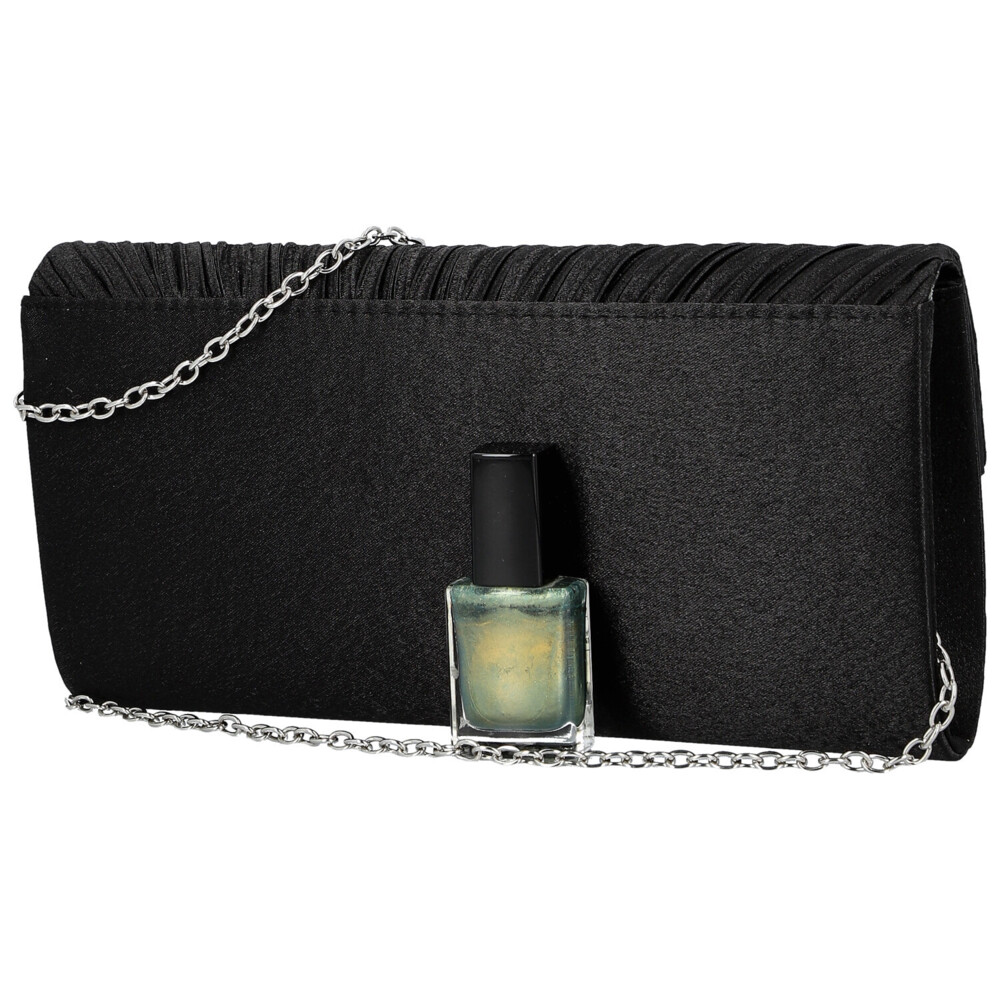 Listová kabelka je ako stvorená na večery, kedy chcete pôsobiť ľahko, elegantne a neodolateľne. Jeho povrch pokrýva jemne trblietavá textília, ktorá vytvára pôsobivú žiaru aj pri tom najmiernejšom pohybe. Klopa je zdobená jemným riasením a je zakončená tenkým kovovým prúžkom dodávajúcim listovú kabelku uhladený a luxusný vzhľad. Zatváranie na magnetický cvok je pohodlné a praktické. Vnútri sa urýva presne toľko priestoru, koľko potrebujete na ples alebo slávnostný večer. Ku kabelke patrí aj kovová retiazka na pripnutie, vďaka ktorej ju môžete nosiť aj cez rameno. Objednajte ešte dnes a vyskúšajte, vrátiť ho môžete až do 30 dní!