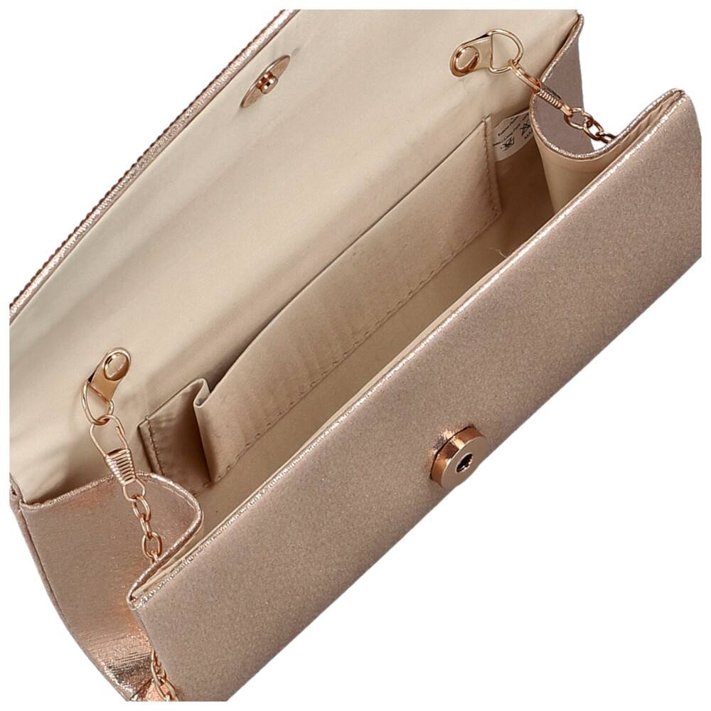 Táto plesová listová kabelka je malý šperk, ktorý rozžiari každý slávnostný outfit. Nadčasový klasický strih dopĺňa elegantne zaoblená chlopňa zdobená drobnými kamienkami, ktoré jemne zachytávajú svetlo a dodávajú kabelke luxusný charakter. Trblietavá textília na tele listovej kabelky vytvára očarujúci efekt a podčiarkuje večernú atmosféru. Uzatváranie na magnetický cvok zaisťuje pohodlné a rýchle používanie, zatiaľ čo vnútorný priestor ponúka miesto pre nevyhnutnosti, ktoré chcete mať stále pri sebe. Kovová retiazka umožňuje nosiť kabelku klasicky v ruke alebo elegantne na ramene. Ideálna voľba pre plesy, večierky aj výnimočné udalosti. Objednajte ešte dnes a vyskúšajte, vrátiť ho môžete až do 30 dní!