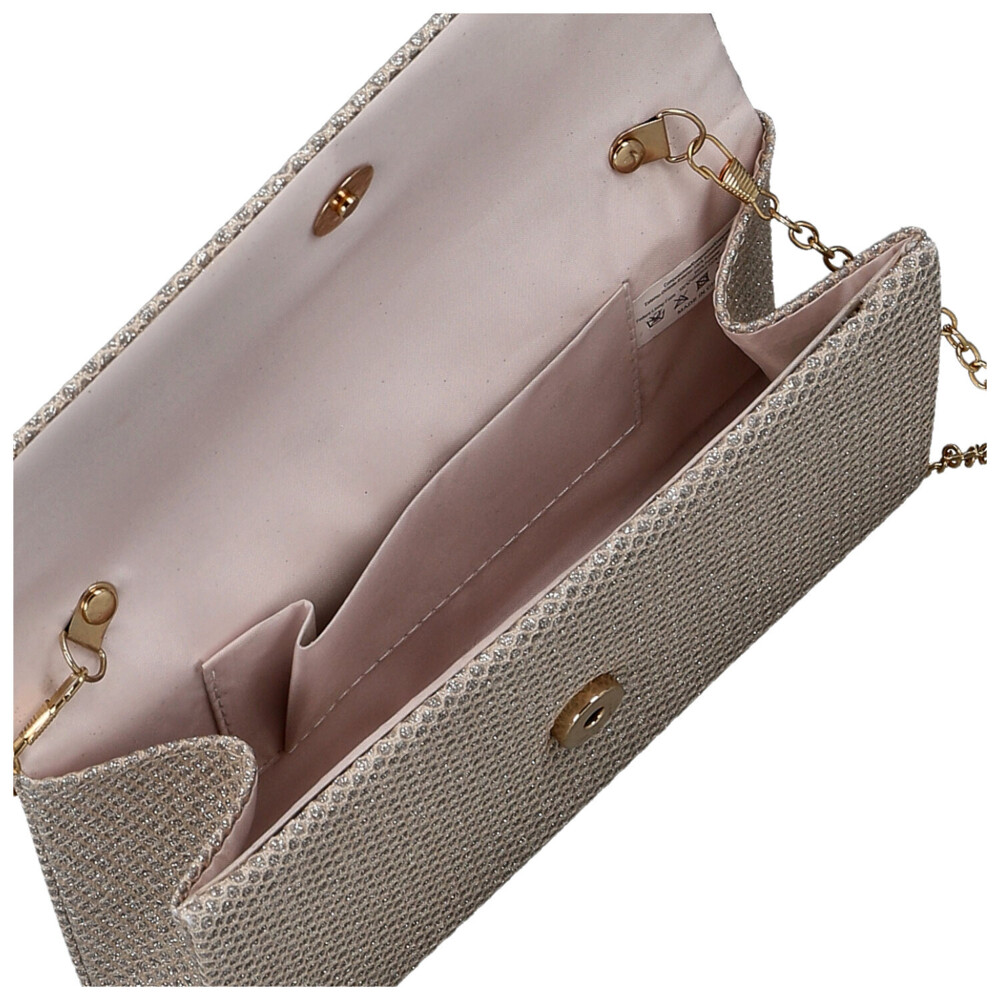 Elegantná listová kabelka v klasickom strihu, ktorá rozžiari každý večerný look. Povrch z trblietavej textílie hrá so svetlom a dodáva kabelke energický, moderný nádych. Klopa na magnetický cvok sa ľahko otvára a po rozopnutí ponúkne miesto presne na to, čo chcete mať stále pri sebe. Kovová retiazka umožňuje nosiť listovú kabelku na ramene a dodať outfitu ležérny šmrnc, alebo ho vziať do ruky ako výrazný doplnok. Ideálna voľba pre párty, plesy aj špeciálne príležitosti, kedy chcete zažiariť bez kompromisov. Objednajte ešte dnes a vyskúšajte, vrátiť ho môžete až do 30 dní!