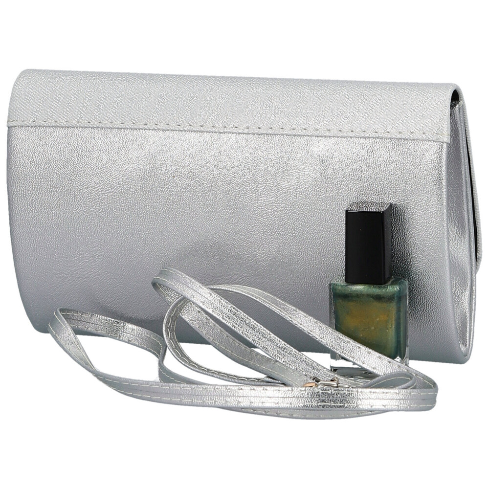 Táto syntetická plesová kabelka spája jednoduchosť s jemným nádychom luxusu. Dominantou je dekoratívna klopa, ktorá dodáva modelu slávnostný vzhľad, zatiaľ čo zvyšok kabelky zostáva hladký a elegantne čistý. Klopa sa zatvára na magnetický cvok, takže obsah máte rýchlo a pohodlne dostupný. Vnútri nájdete kompaktný priestor určený pre nevyhnutnosti každej spoločenskej udalosti. Kabelku môžete nosiť v ruke alebo využiť prídavný koženkový popruh na pohodlné nosenie cez rameno. Perfektný doplnok k večernej róbe aj minimalistickému outfitu. Objednajte ešte dnes a vyskúšajte, vrátiť ju môžete do 30 dní.