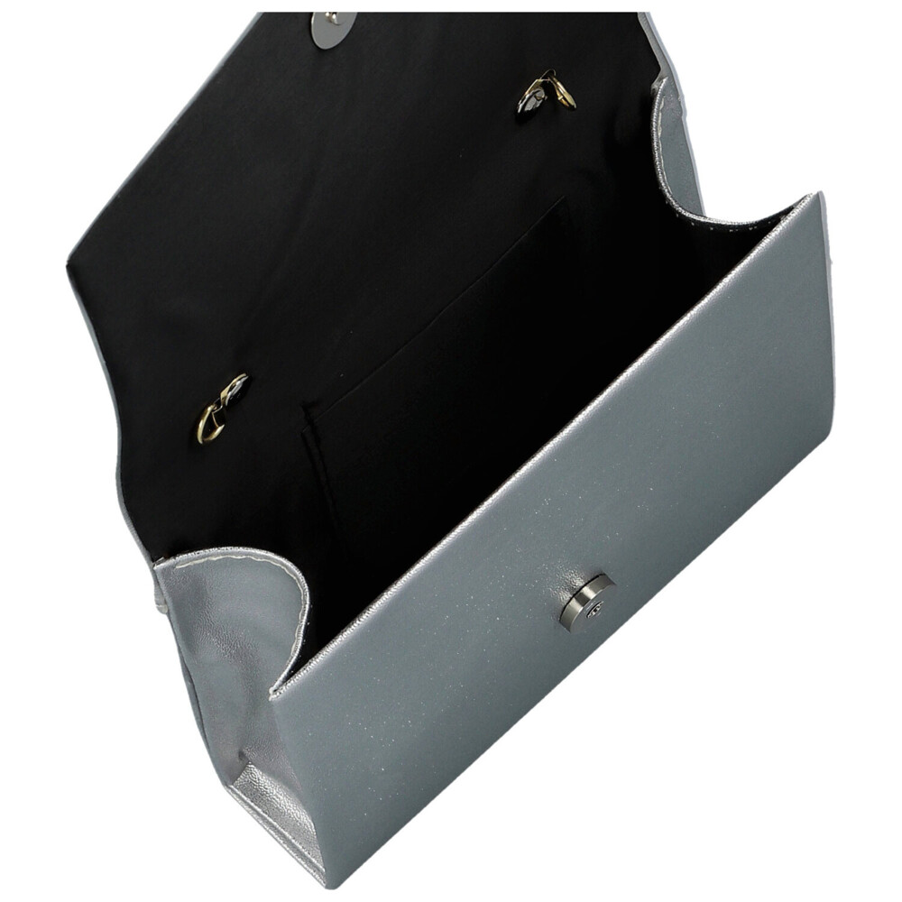 Táto plesová kabelka je stelesnením večernej elegancie. Veľká klopa plynule prekrýva celú prednú časť a uzatvára sa na nenápadný magnetický cvok, vďaka ktorému drží spoľahlivo na svojom mieste a zároveň umožní rýchly prístup k obsahu. Po odklopení chlopne sa otvorí čisto riešený vnútorný priestor, dosť veľký na všetky nevyhnutnosti, napriek tomu stále elegantne kompaktný. Súčasťou kabelky je tenký koženkový popruh, ktorý je možné jednoducho pripnúť, keď chcete mať voľné ruky. Vkusný večerný doplnok, ktorý dodá vášmu outfitu poslednú iskru. Objednajte ešte dnes a vyskúšajte, vrátiť ju môžete do 30 dní.