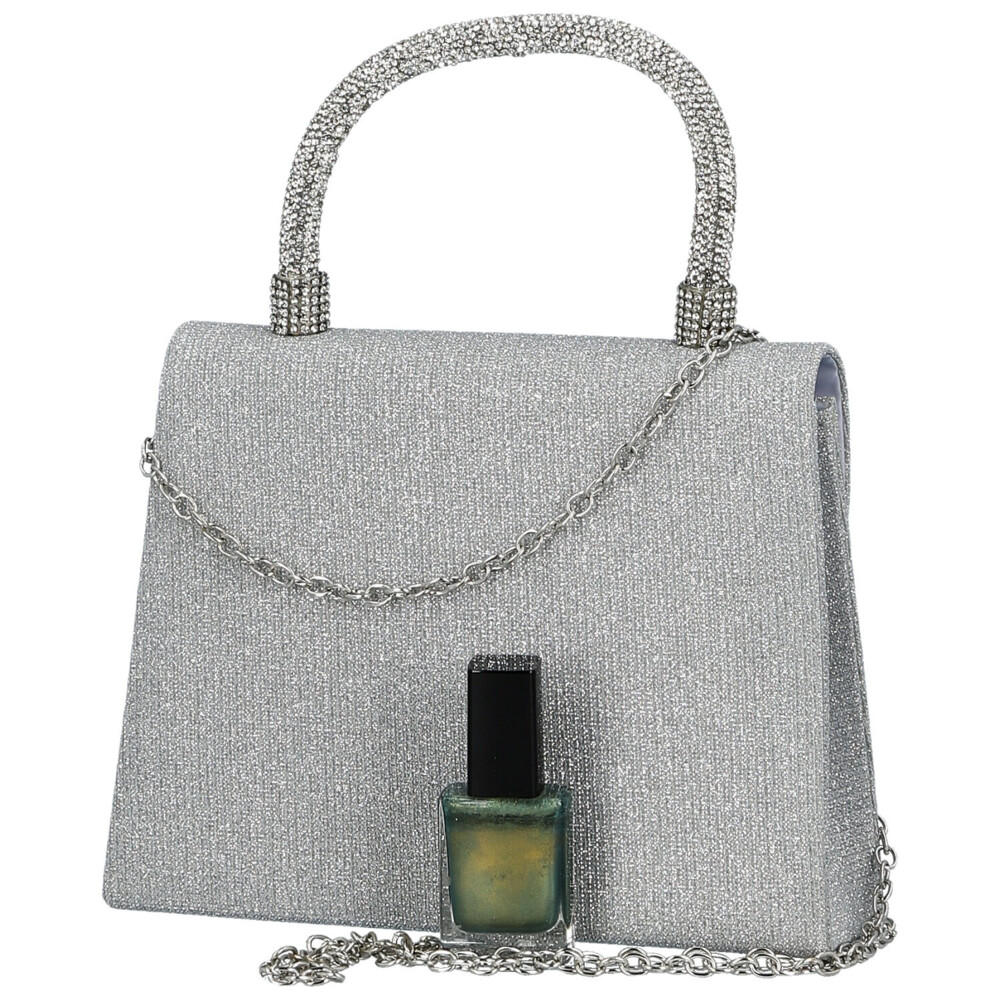 Táto plesová kabelka v kufríkovom strihu je malý luxusný klenot, ktorý rozžiari každý slávnostný outfit. Pevná konštrukcia potiahnutá trblietavou textilnou pôsobí elegantne a sebavedome, zatiaľ čo ucho do ruky bohato zdobené kamienkami pridáva kabelke výrazný šmrnc a šperkový efekt. Zaoblená klopa so zapínaním na magnetický cvok ukrýva praktický priestor pre tie najdôležitejšie drobnosti, bez ktorých sa večer nezaobídete. Vďaka odnímateľnej kovovej retiazke môžete kabelku nosiť presne podľa nálady - noblesne v ruke alebo ležérne na ramene. Štýlový a živý doplnok pre plesy, večierky aj výnimočné chvíle, kedy chcete zažiariť bez kompromisov. Objednajte ešte dnes a vyskúšajte, vrátiť ju môžete až za 30 dní!