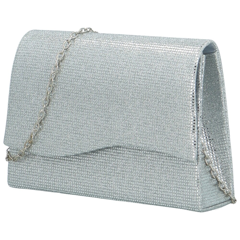 Táto strieborná listová kabelka od Michelle Moon oživí a doplní vaše sviatočné či večerné šaty a každého očarí. Asymetrická chlopňa dodáva kabelke originálny a dynamický vzhľad. Jej povrch je potiahnutý trblietavou látkou. Vnútri kabelky je dostatok miesta na vaše osobné veci. Krásne vám bude sedieť v ruke, ale aj prevesená cez rameno po pripnutí dlhej retiazky. Pevná konštrukcia zaistí, že si kabelka udrží svoj tvar a zároveň pôsobí luxusným dojmom. Má pevné dno, takže bude pevne stáť aj pri odložení. Dokonale doplní elegantný outfit. Objednajte ešte dnes a vyskúšajte! Vrátiť ju môžete až do 30 dní!