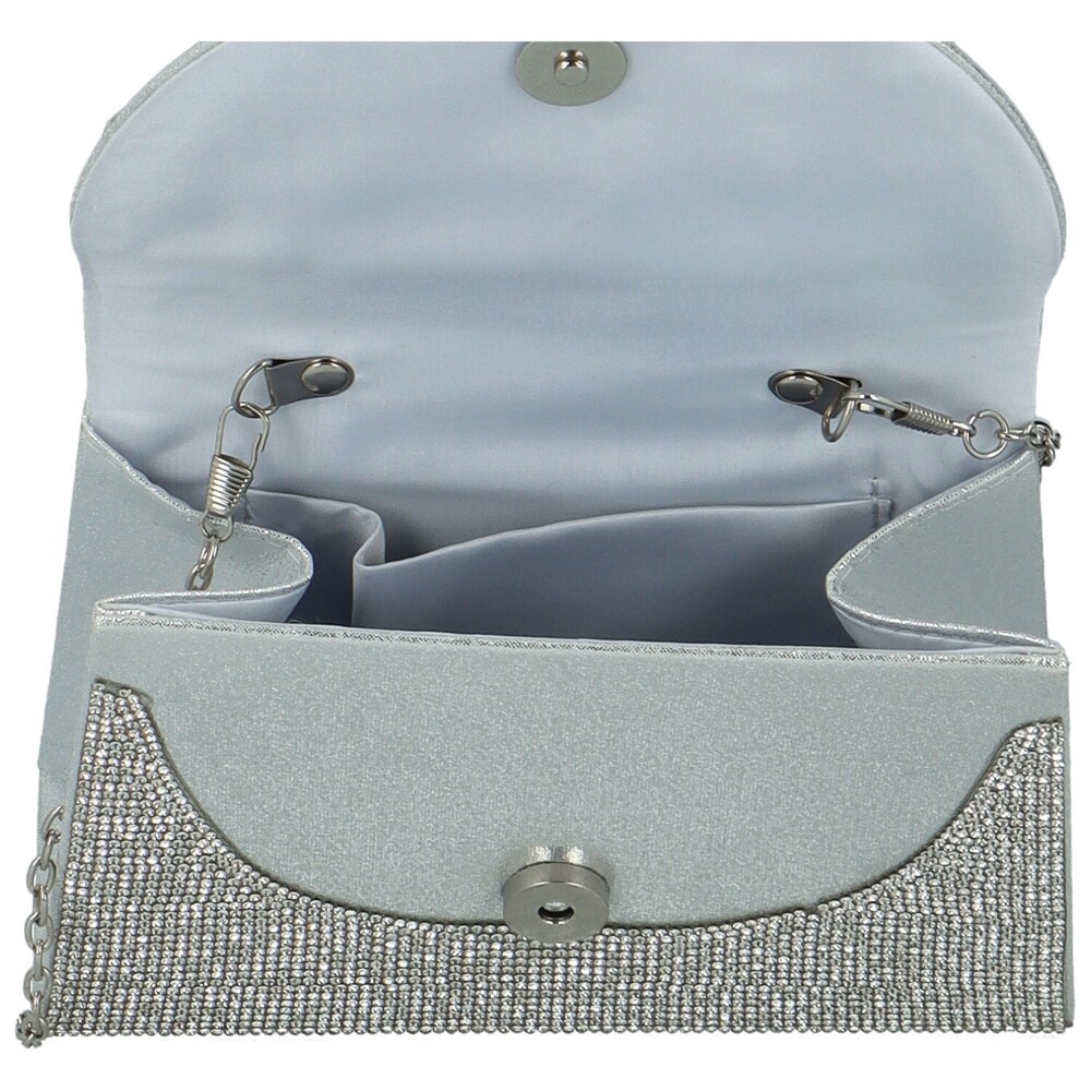 Luxusný trblietavý kúsok, s ktorým zanecháte dojem, od značky Michelle Moon. Elegantná strieborná plesová kabelka v pevnom prevedení s trblietavým povrchom. Má sofistikovaný tvar s jemne zaoblenými líniami a asymetrickou chlopňou, ktorá jej dodáva moderný vzhľad. Povrch kabelky je pokrytý drobnými trblietavými kamienkami, ktoré vytvárajú luxusný efekt a krásne odrážajú svetlo. Jej chlopňa sa otvára magnetickým cvokom a vo vnútri je priestor pre vaše drobnosti. Vnútorná zadná strana ponúka aj menšie vrecko v podšívke. Je vybavená dvoma typmi úchytov - pevným oblúkovým uchom na nosenie v ruke a jemnou kovovou retiazkou na nosenie cez rameno. Kabelka dodá vášmu slávnostnému outfitu nádych elegancie a noblesy. Objednajte ešte dnes a vyskúšajte! Vrátiť ju môžete až do 30 dní!