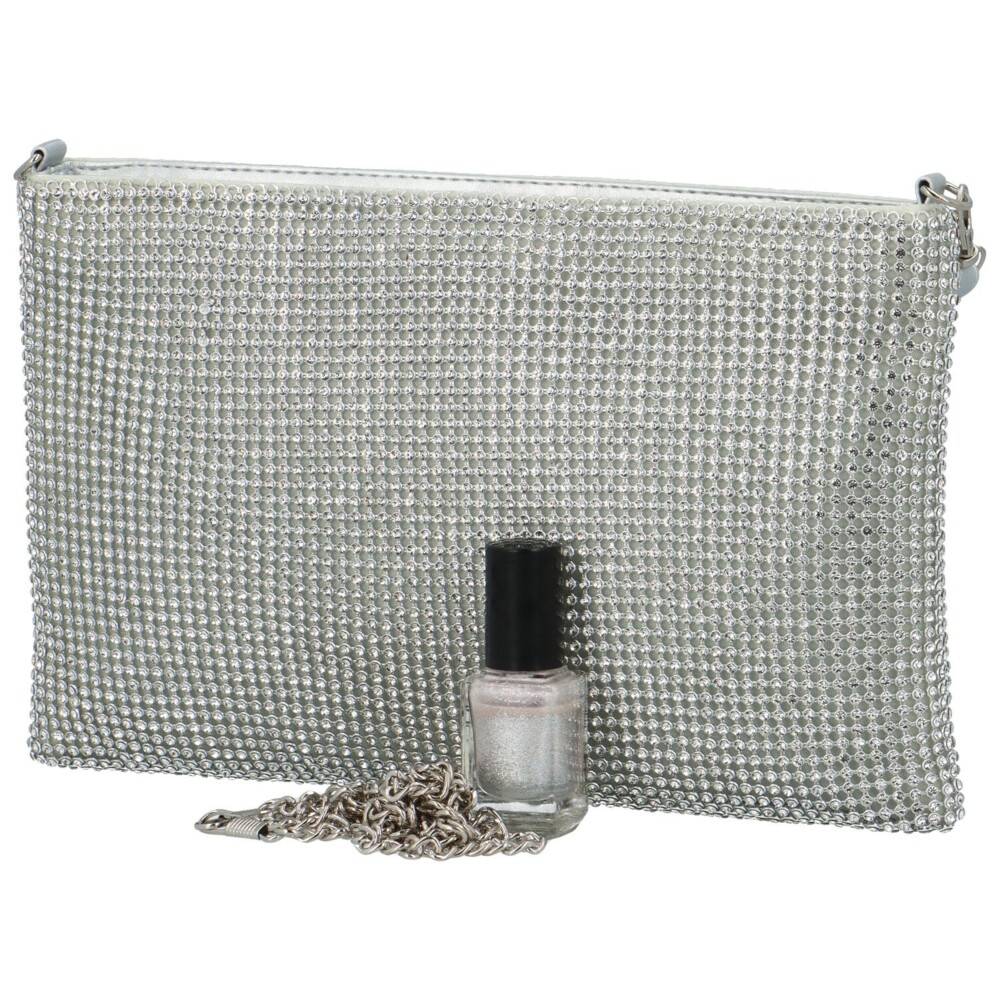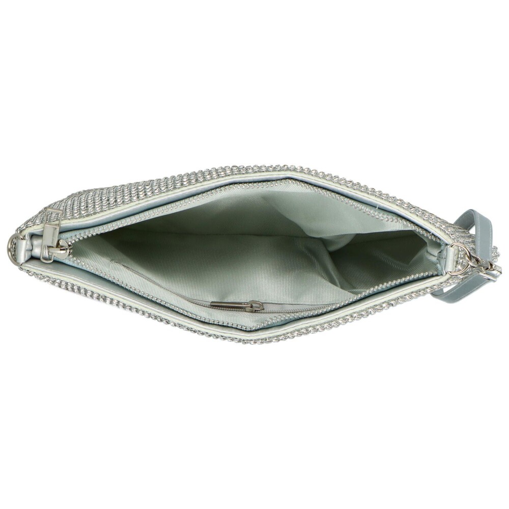 Táto strieborná listová kabelka od značky Michelle Moon je mäkká a nosiť ju môžete v ruke alebo na zápästí vďaka elegantnému pútku. Môžete pripnúť aj jemnú retiazku a nosiť ju zavesnú cez plece. Jemný vzhľad dopĺňajú malé a lesklé kamienky po povrchu listovej kabelky. Jednoduchý prístup k vašim veciam vám zaistí zips. Tak objednajte ešte dnes a vyskúšajte! Vrátiť ho môžete do 30tich dní.