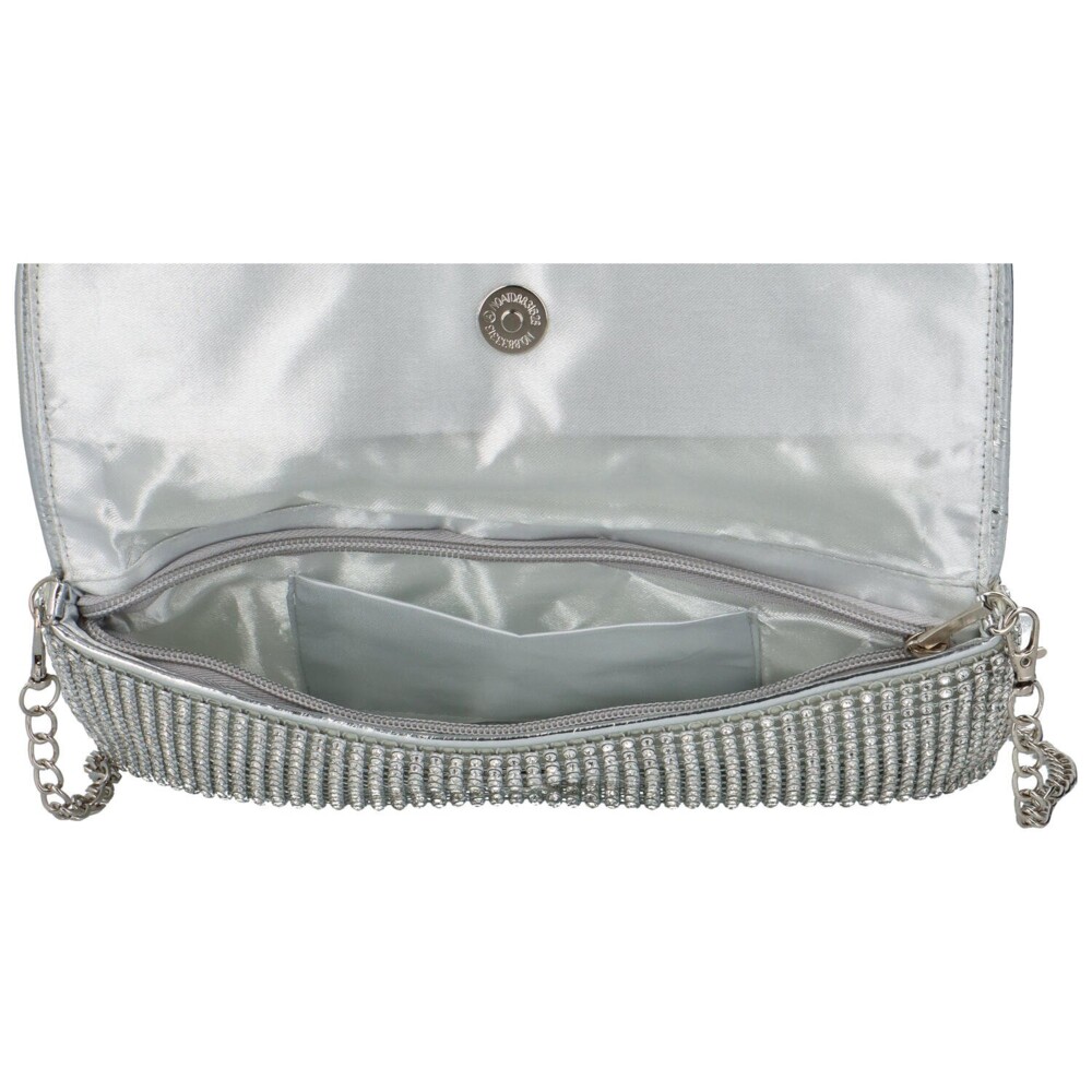 S touto striebornou listovou kabelkou od značky MOON nemôžete šliapnuť vedľa. Je v mäkkom prevedení a uzavriete ju zipsom a širokou chlopňou na magnetický cvok. Retiazka v rolke popruhu vám umožní elegantné a pohodlné nosenie cez plece. Vnútri je dostatok miesta na všetky vaše osobné veci, ktoré chcete mať neustále pri sebe. Listová kabelka je látková a potiahnutá trblietavými kamienkami, ktoré dodávajú kabelke luxusný vzhľad a tak rozžiari váš večerný outfit. Tak objednajte ešte dnes a vyskúšajte! Vrátiť ho môžete do 30tich dní.