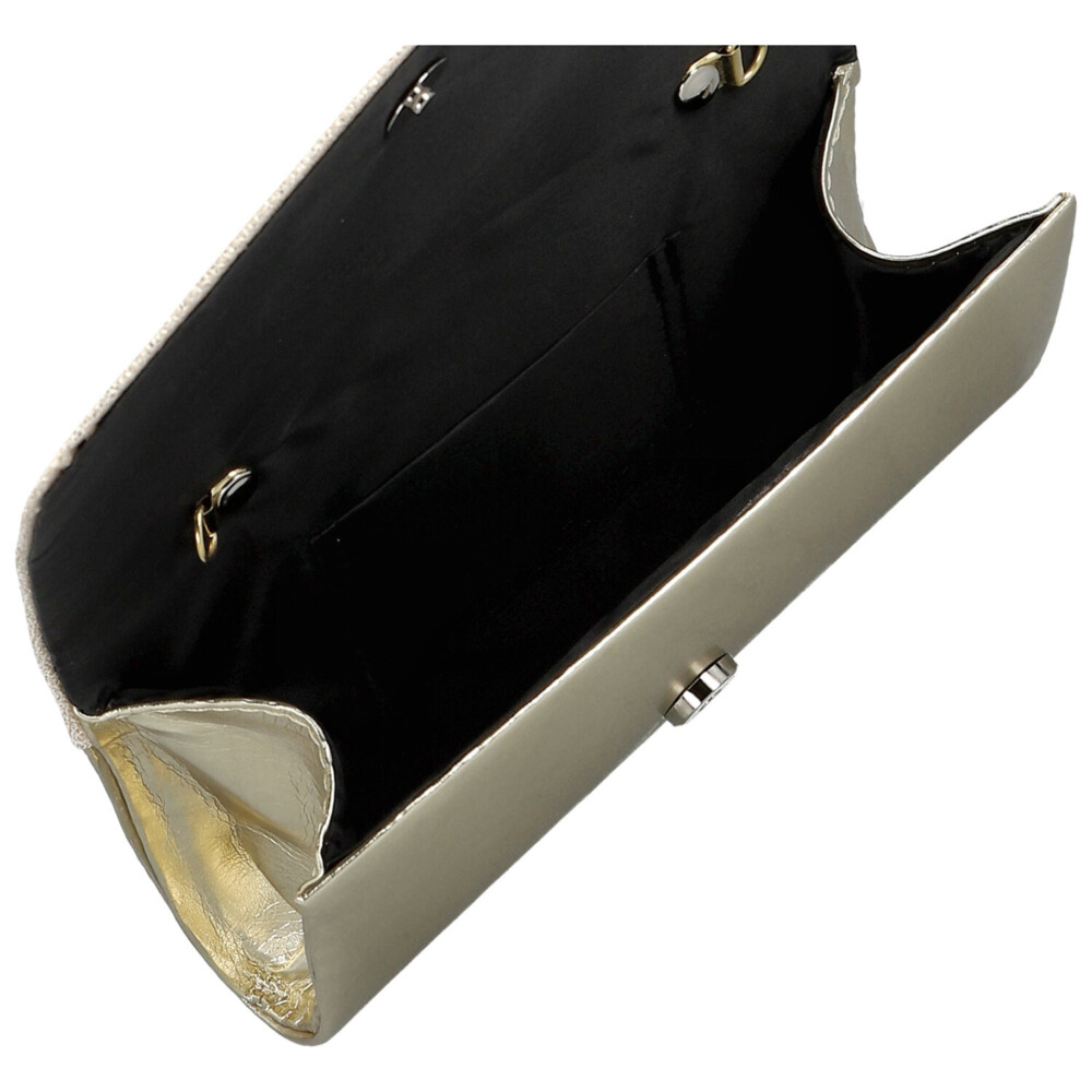 Táto syntetická plesová kabelka spája jednoduchosť s jemným nádychom luxusu. Dominantou je dekoratívna klopa, ktorá dodáva modelu slávnostný vzhľad, zatiaľ čo zvyšok kabelky zostáva hladký a elegantne čistý. Klopa sa zatvára na magnetický cvok, takže obsah máte rýchlo a pohodlne dostupný. Vnútri nájdete kompaktný priestor určený pre nevyhnutnosti každej spoločenskej udalosti. Kabelku môžete nosiť v ruke alebo využiť prídavný koženkový popruh na pohodlné nosenie cez rameno. Perfektný doplnok k večernej róbe aj minimalistickému outfitu. Objednajte ešte dnes a vyskúšajte, vrátiť ju môžete do 30 dní.