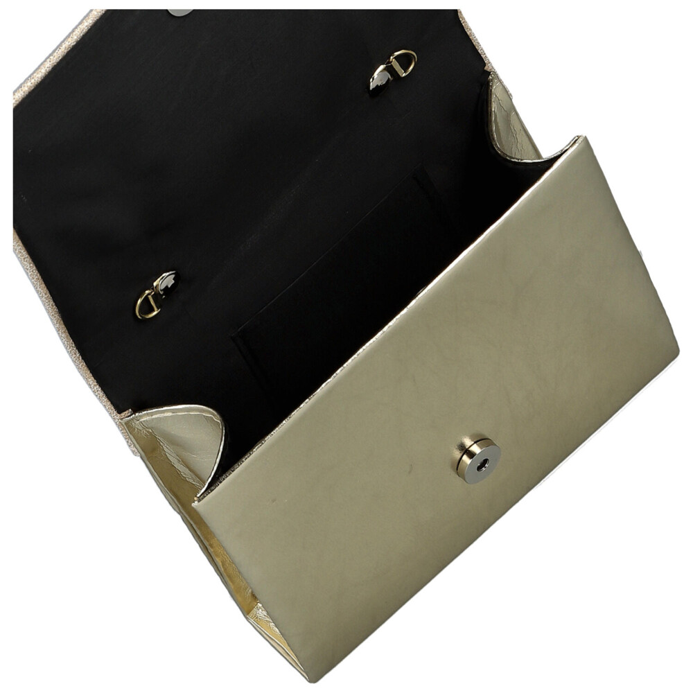 Táto plesová kabelka je stelesnením večernej elegancie. Veľká klopa plynule prekrýva celú prednú časť a uzatvára sa na nenápadný magnetický cvok, vďaka ktorému drží spoľahlivo na svojom mieste a zároveň umožní rýchly prístup k obsahu. Po odklopení chlopne sa otvorí čisto riešený vnútorný priestor, dosť veľký na všetky nevyhnutnosti, napriek tomu stále elegantne kompaktný. Súčasťou kabelky je tenký koženkový popruh, ktorý je možné jednoducho pripnúť, keď chcete mať voľné ruky. Vkusný večerný doplnok, ktorý dodá vášmu outfitu poslednú iskru. Objednajte ešte dnes a vyskúšajte, vrátiť ju môžete do 30 dní.