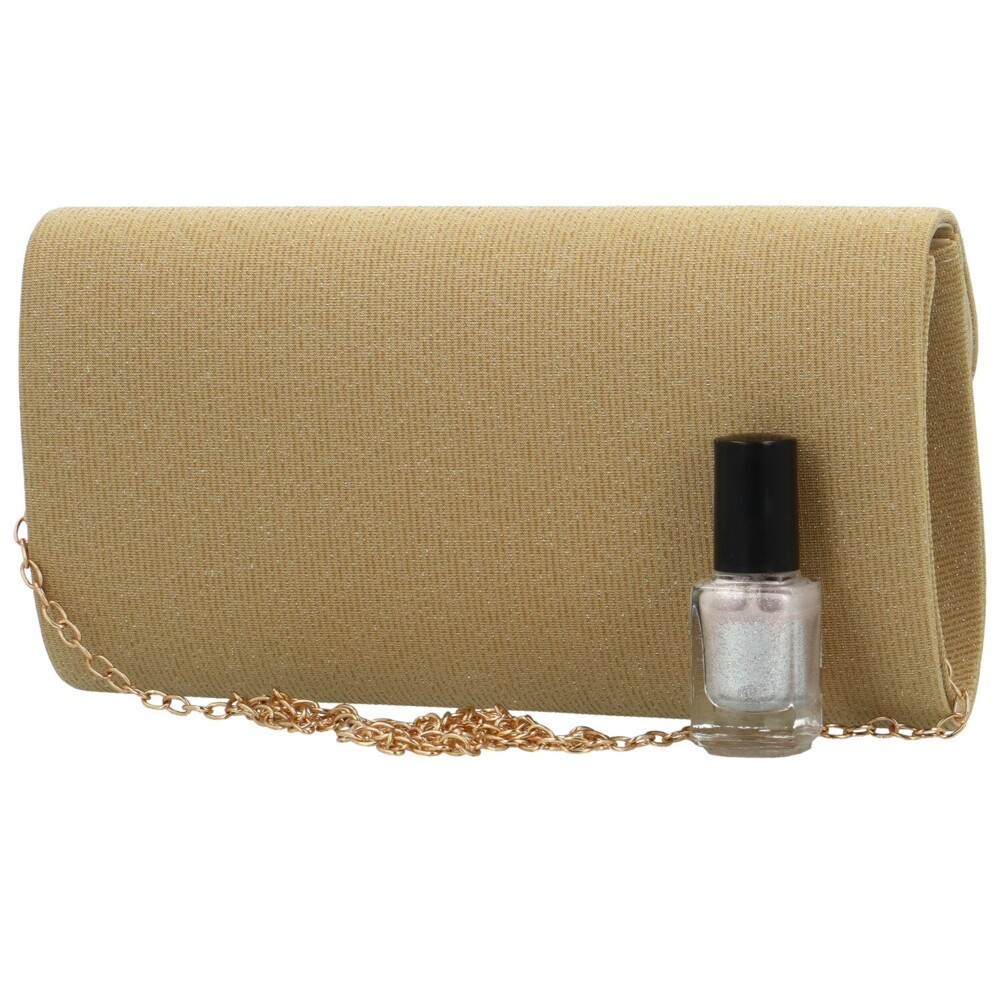 Štýlový kúsok v zlatej farbe od Michelle Moon, ktorý perfektne doplní a rozžiari spoločenský večer. Listová kabelka je pevná a pod chlopňou s pokovaným lemom ponúka dostatok priestoru pre všetky osobné veci. Tento kúsok vás zaujme a spoľahlivo doplní outfit na spoločenskej akcii. Po otvorení chlopne na magnetický cvok je k dispozícii, okrem hlavného úložného priestoru, aj menšia otvorená priehradka. K listovej kabelke je aj jemná retiazka na nosenie cez plece, ktorú možno jednoducho odopnúť. Tak objednajte ešte dnes a vyskúšajte! Vrátiť ju môžete do 30tich dní.