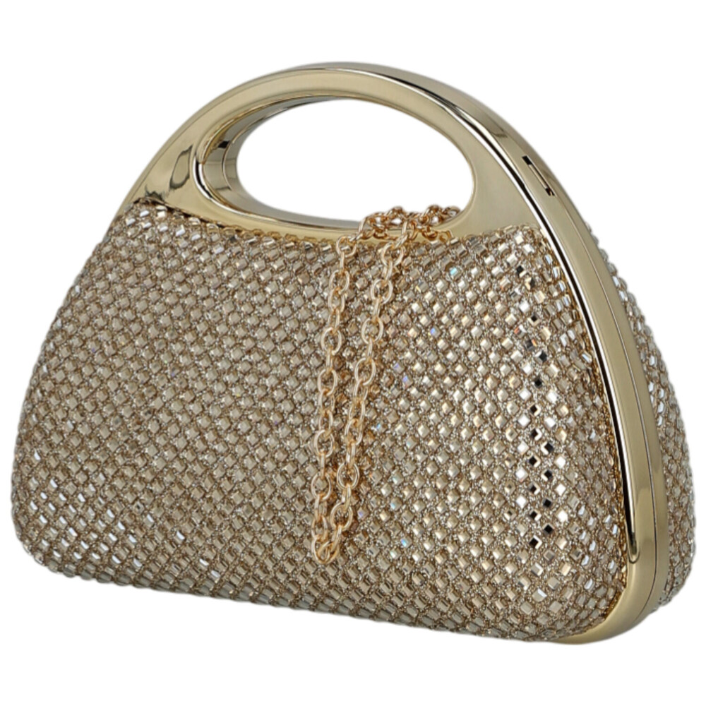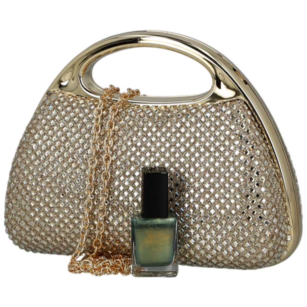 Neprehliadnuteľná plesová kabelka, ktorá žiari v každom pohybe. Dizajnové kovové ucho nie je len štýlovým prvkom, ale zároveň slúži ako originálne otváranie kabelky. Povrch potiahnutý trblietavou sieťkou vytvára luxusný kamienkový efekt, ktorý dodá outfitu okamžitý wow-efekt. Vnútri vás poteší elegantná podšívka a miesto na tie najdôležitejšie drobnosti. Vďaka kovovej retiazke môžete kabelku nosiť aj cez rameno a prispôsobiť ju večernému štýlu. Moderný glamour doplnok, ktorý bol stvorený pre plesy, večierky aj nezabudnuteľné noci. Objednajte ešte dnes a vyskúšajte, vrátiť ju môžete do 30 dní.