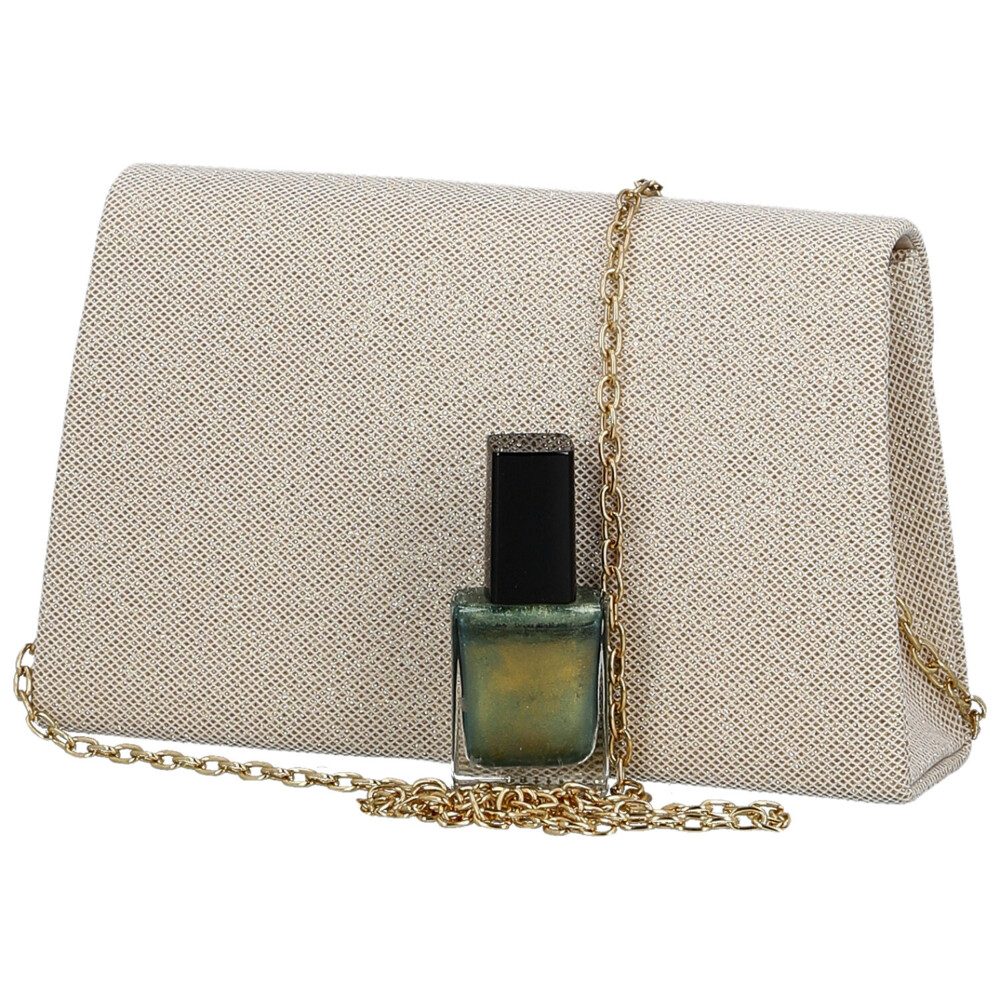 Očarujúca plesová listová kabelka v pevnom tvare je presne ten detail, ktorý premení outfit v nezabudnuteľný look. Trblietavá textília vytvára jemný glamour efekt a krásne vynikne pri večernom osvetlení. Originálne strihaná chlopňa so sponou z kamienkov pôsobí ako šperk a dodáva kabelke luxusný charakter. Magnetické zapínanie je nenápadné, ale praktické, a vnútorný priestor pojme všetky nevyhnutnosti, bez ktorých sa na spoločenskej akcii nezaobídete. Kovová retiazka umožňuje pohodlné nosenie na ramene, keď chcete mať ruky voľné. Trendy doplnok pre ženy, ktoré chcú žiariť s ľahkosťou a štýlom. Objednajte ešte dnes a vyskúšajte, vrátiť ho môžete až do 30 dní!