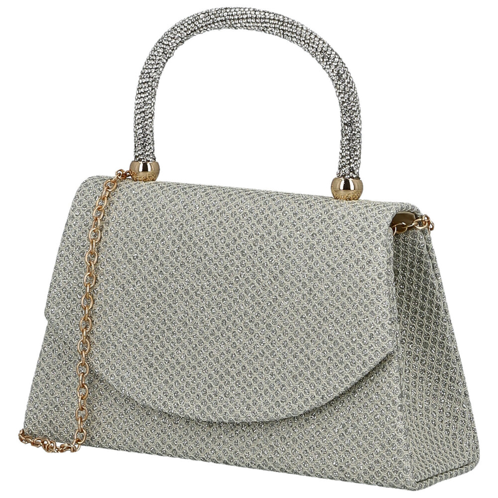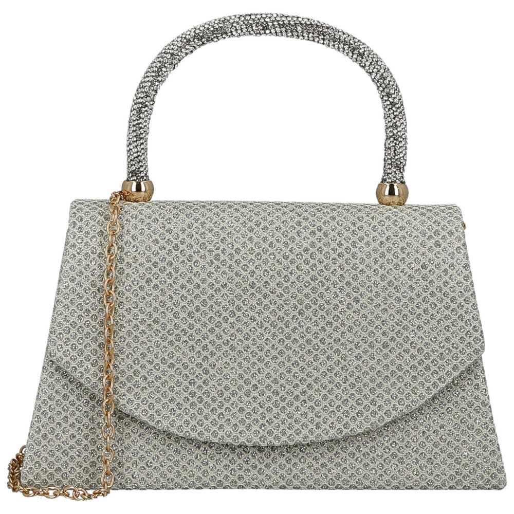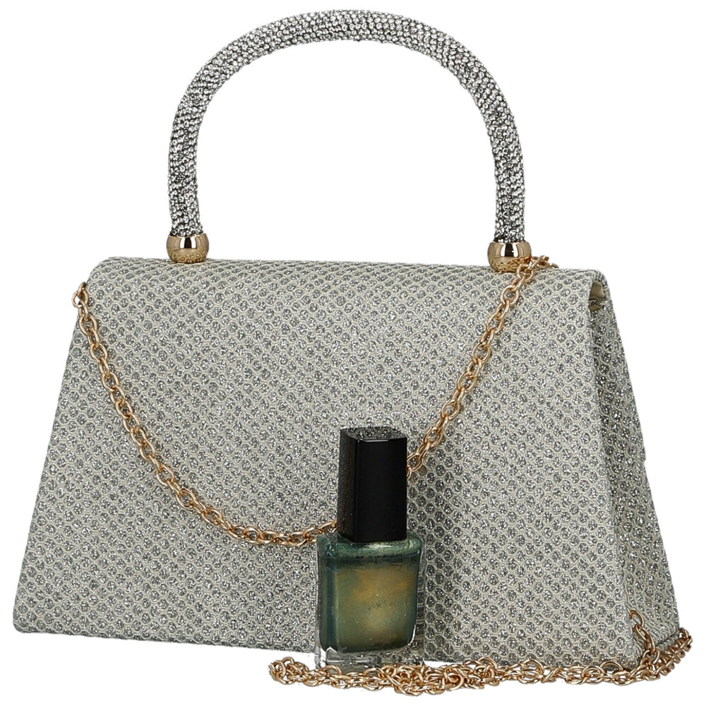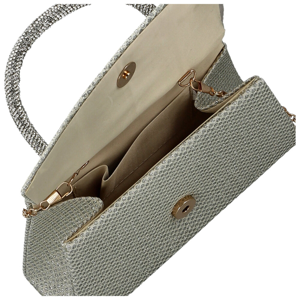 Žiariaca hviezda každého večera! Táto luxusná plesová kabelka v kufríkovom strihu očarí pevným uchom zdobeným trblietavými kamienkami a elegantnou zaoblenou chlopňou na magnetický cvok. Vnútri nájdete priestor pre najnutnejšie drobnosti, zatiaľ čo pevné dno zaisťuje, že kabelka stojí vždy štýlovo. Celý povrch je pokrytý iskrivou textíliou a vďaka kovovej retiazke ju môžete nosiť cez rameno alebo v ruke. Perfektný mix elegancie, komfort a trendy energie – doplnok, ktorý nemôže chýbať. Objednajte ešte dnes a vyskúšajte, vrátiť ho môžete až do 30 dní!