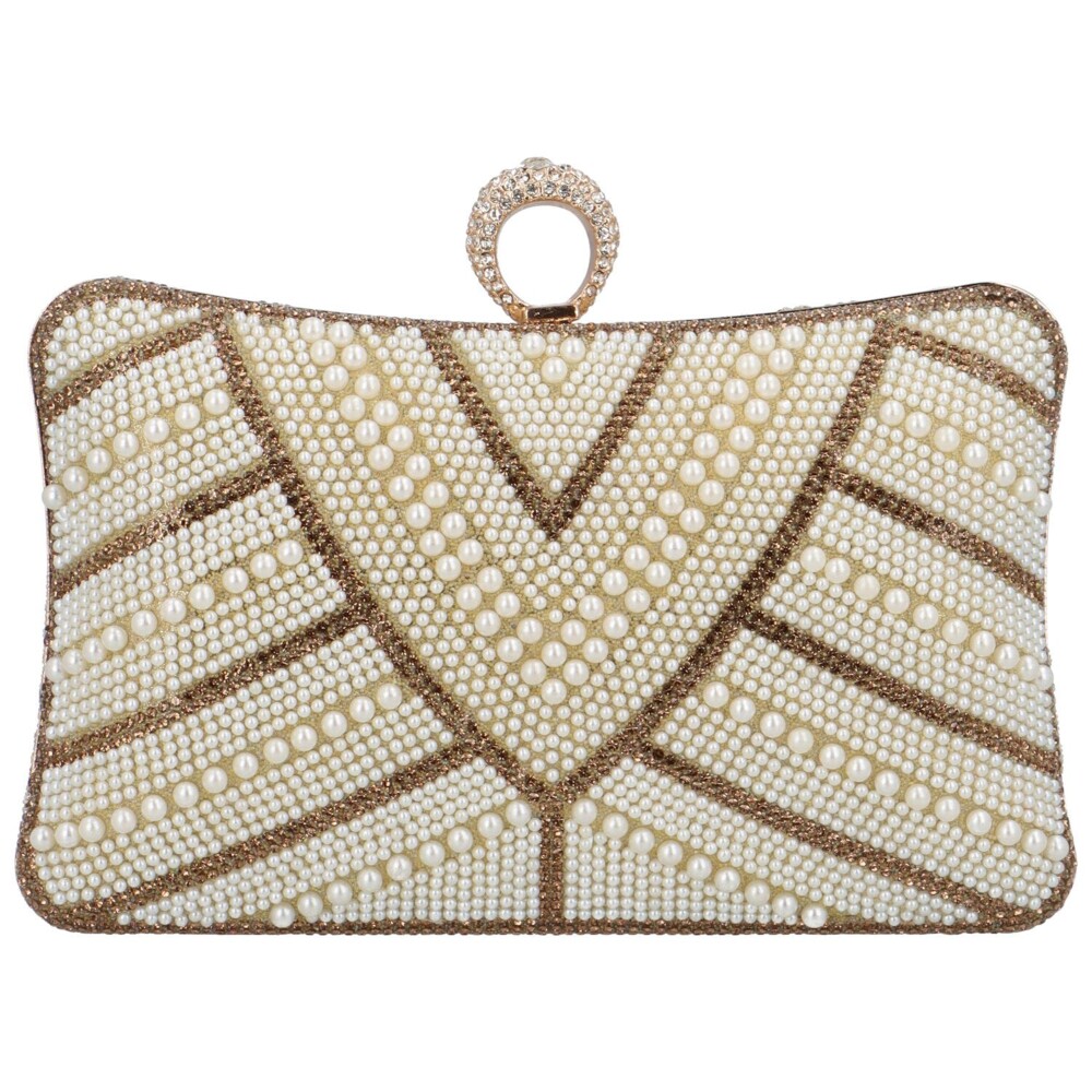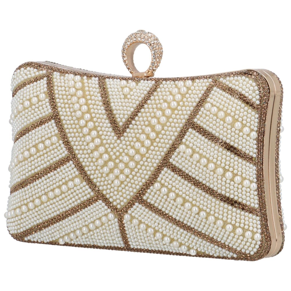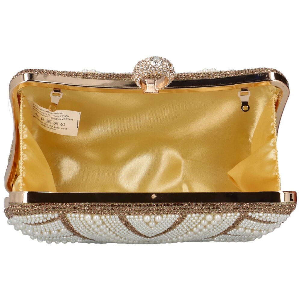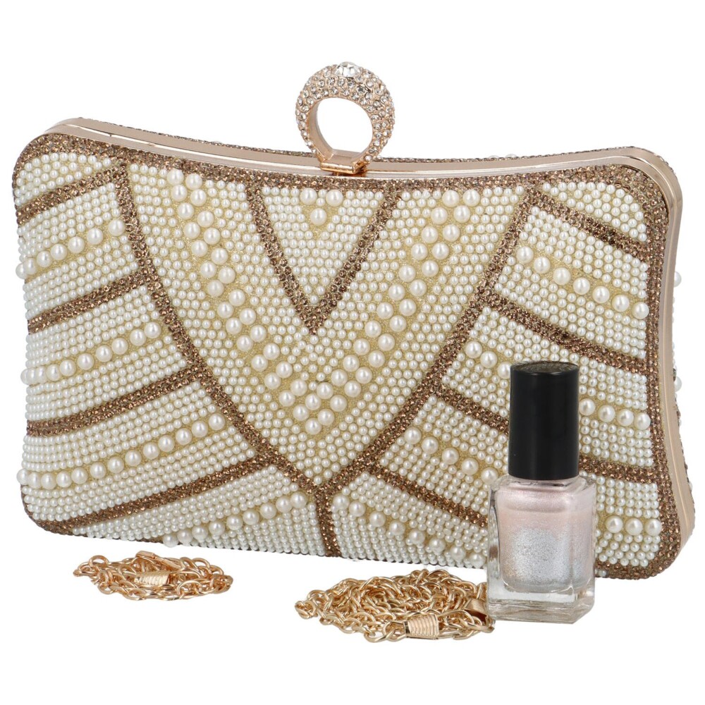 Luxusná zlatá listová kabelka od Moon s kamienkami a perličkami, ktoré rozžiaria vaše sviatočné i večerné šaty. V kovovom rámčeku sa ukrýva zapínanie v podobe prsteňa. Listová kabelka vyzerá úchvatne keď do prsteňa vložíte prst, takto ju môžete nosiť v ruke. Môžete však pripnúť aj jemnú retiazku a nosiť kabelku pohodlne cez plece. Kombinácia perál a kamienkov zaujme na prvý pohľad. Tak objednajte ešte dnes a vyskúšajte! Vrátiť ho môžete do 30tich dní.