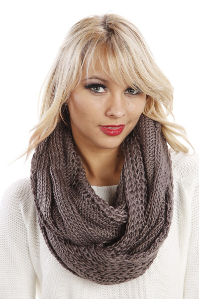 Elegantná pletená kruhová šál. Možno dvakrát omotať okolo krku. Materiál PE.
