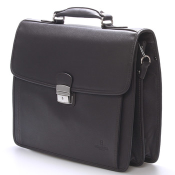 Pánská, tmavě hnědá, luxusní, celokožená aktovka Hexagona s klopnou. Uvnitř je rozdělená přepážkou na zip, dále zde najdete kapsičky na mobil, tužky a drobnosti bez zipu. V zadní přihrádce je kapsa na zip. Pod klopou je kapsa na zip. Další kapsa na zip je na zadní straně aktovky. Součástí aktovky je odnímatelný a nastavitelný polokožený popruh. Aktovku tak pohodlně noste v ruce za ucho nebo s popruhem přes rameno.