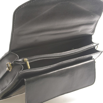 Luxusná čierna unisex kožená aktovka ItalY dvojfochová. Parádna kožená dizajnová business aktovka pre pánov aj dámy s dvomi hlavnými priehradkami a prídavným popruhom. Aktovka nie je príliš veľká a môže slúžiť aj ako spisovka. Dovnútra sa zmestí notebook s max. rozmermi 30 x 21 cm. Na prednej strane je výrazné vrecko s chlopňou bez zapínania.