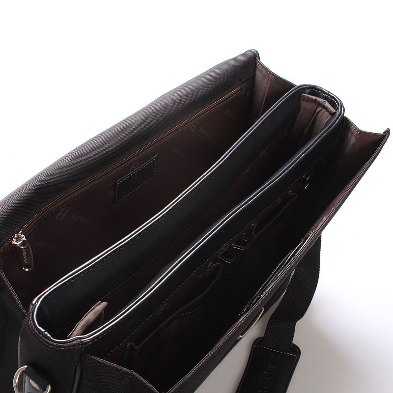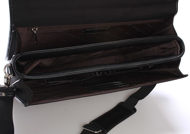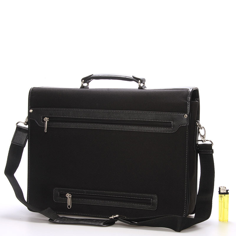 Čierna luxusná pánska tri fochová aktovka cez rameno Hexagon. Jedna z troch priestranných priehradiek sa dá využiť na notebook max rozmerov 39 x 27 cm, ale aj menšie, pretože veľkosť priehradky sa dá upraviť vďaka systému na suchý zips. Aktovka je pevná s pevným dnom a je veľmi priestranná. Ďalšie dve priehradky obsahujú kapsičky na ceruzky, mobil, dokumenty a ďalšie dôležité veci. Zatvára sa príklopkou. Zozadu je vrecko na zips. Súčasťou tašky je nastaviteľný nylonový popruh. Taška je nylonová s koženkovými detailmi. Objednajte ešte dnes a vyskúšajte, vrátiť ju môžete až za 30 dní! + Doprava ZADARMO!