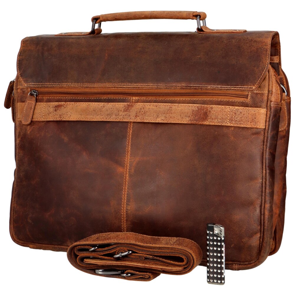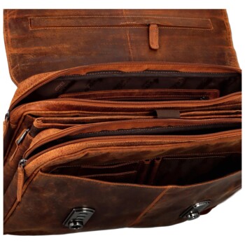 Praktická pánska taška v aktovkovom štýle na každý pracovný deň. Tento kvalitný módny kúsok od obľúbenej značky Greenwood oceníte cestou do práce, na schôdzke aj na služobnej ceste. Aktovka pohodlne pojme váš notebook a všetky pracovné dokumenty. Má množstvo zipsových vreciek, pre vašu bezpečnosť sa otvára s dvoma kovovými sponami. Na zadnej strane je zipsové vrecko. Malé ucho umožní nosenie v ruke a dlhý popruh poslúži na pohodlné nosenie cez plece pokojne po celý deň. Drobné škrabance a odreniny nie sú závadou kože, časom a užívaním dodajú taške jej individuálny charakter a patinu. Objednajte ešte dnes a vyskúšajte! Vrátiť ju môžete až za 30 dní!