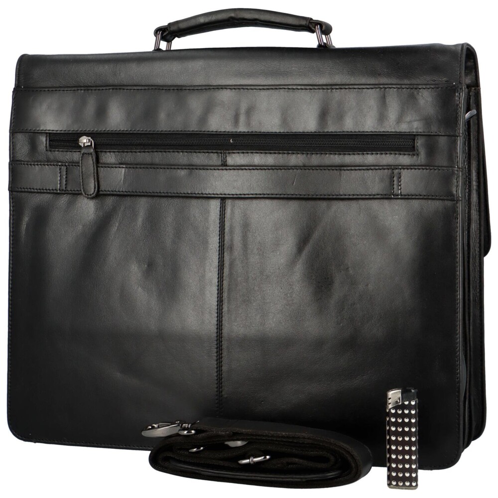 Pracovné cesty, pracovné schôdzky či prednášky hladko zvládnete s touto čiernou kvalitnou koženou aktovkou. Luxusný produkt značky Greenwood vám bude skvele slúžiť každý deň! Doprajte si raz za dlhý čas kvalitný tovar, ktorý oceníte. Aktovka má klasický, hranatejší tvar a kontrastné prešívanie. Nosiť ju môžete za pevné ucho alebo cez plece s polokoženým popruhom, na ktorom je samozrejmosťou vystuženie na plece. Chlopňa sa otvorí dvoma klipsami, ktoré majú dojem remienkov so sponami. Pod chlopňou sú dve voľné stredne veľké vrecká. Ďalej vám aktovka ponúkne tri hlavné úložiská, dve veľké vrecká so zipsami, jedno veľké voľné vrecko a nechýba ani vrecko so zipsom na zadnej strane aktovky. Drobné škrabance a odreniny nie sú závadou kože, časom a používaním dodajú taške jej individuálny charakter a patinu. Objednajte ešte dnes a vyskúšajte! Vrátiť ju môžete až za 30 dní!