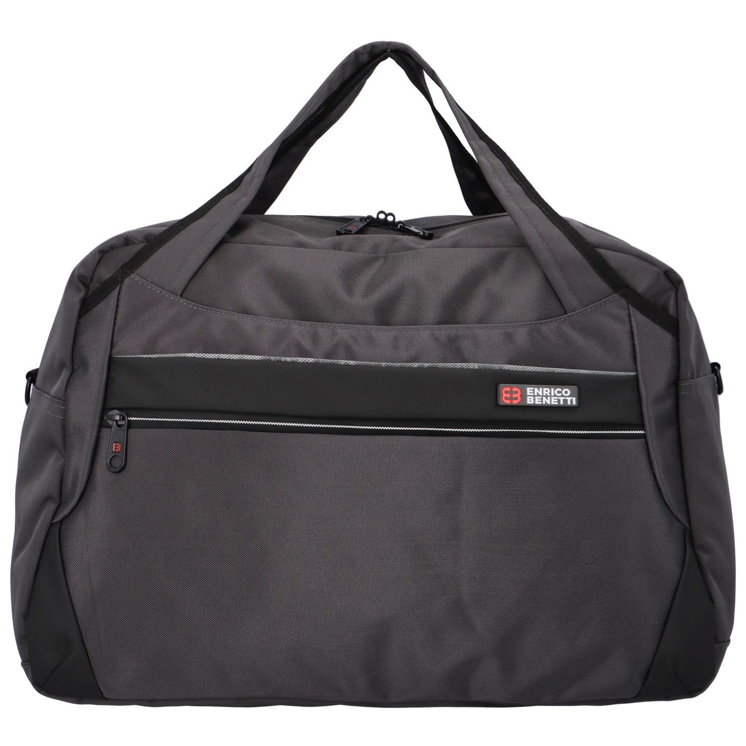 Cestovná šedá látková taška od značky Enrico Benetti , ktorú je možné nosiť v ruke aj cez rameno. Taška je ideálna na cestovanie, ale využijete ju aj ako športovú tašku. Taška je vyrobená z kvalitnej, odolnej textílie, taktiež zipsy tašky sú pevné a spoľahlivé. Hlavné vrecko ponúkne dostatok úložného priestoru s tromi voľnými priehradkami a jednou priehradkou na zips. Z vonkajšej strany má taška vpredu dve vrecká na zips a vzadu jedno voľné vrecko. Uši tašky je možné pripnúť k sebe cvočkom. Odnímateľný popruh je látkový a pevný. Objednajte ešte dnes a vyskúšajte, vrátiť ju môžete až za 30 dní!