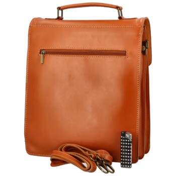 Spoľahnite sa na kožené etue talianskej značky Delami. Či do ruky alebo cez plece, je na vás. Popruh je celokožený s vystužením na plece. Neupierajte si priestor, ktorý v pracovných dňoch určite potrebujete. Atraktívny pánsky model v koňakovej farbe! Novinka! Objednajte ešte dnes a vyskúšajte! Vrátiť ju môžete až za 30 dní. Otvára sa chlopňou so sponou, ktorá sa dá zamknúť. Pod ňou májdete tri voľné vrecká. Ďalšie vrecko leží na zadnej strane etue a je na zips. Malá pevná aktovka na každý deň.