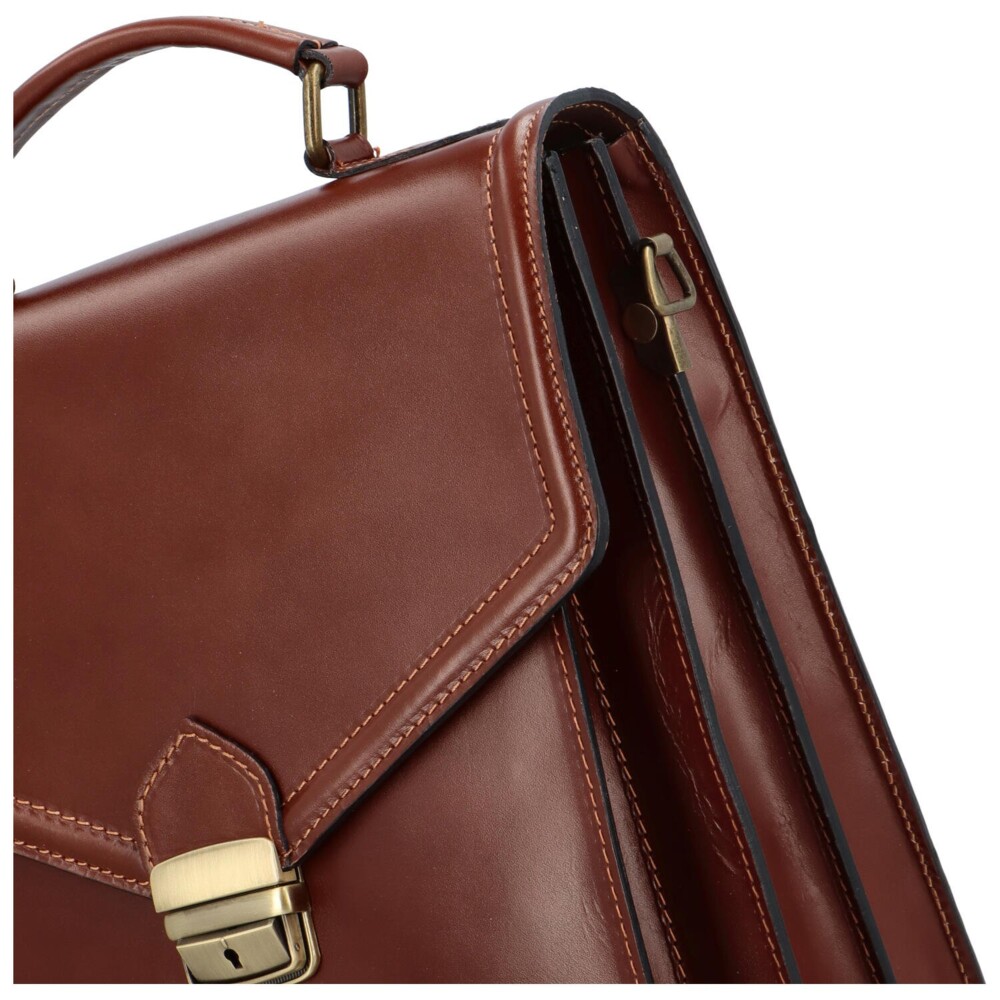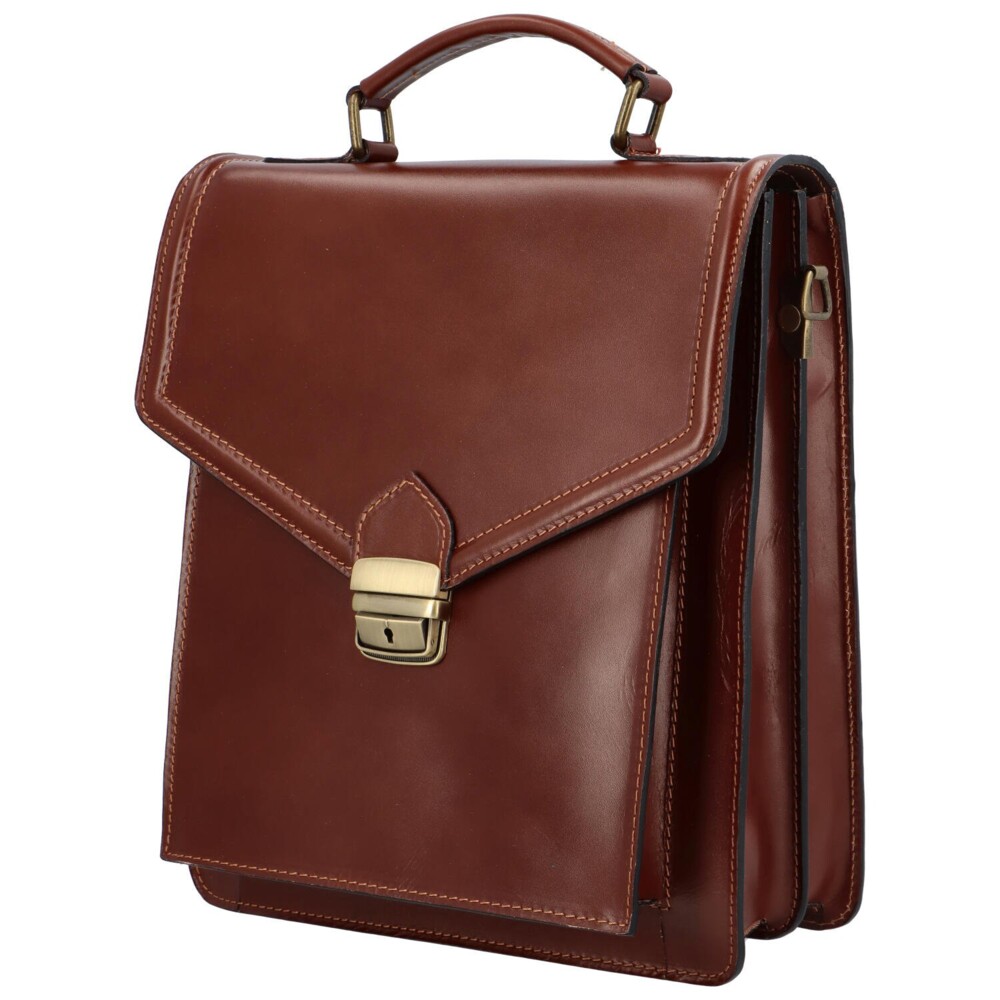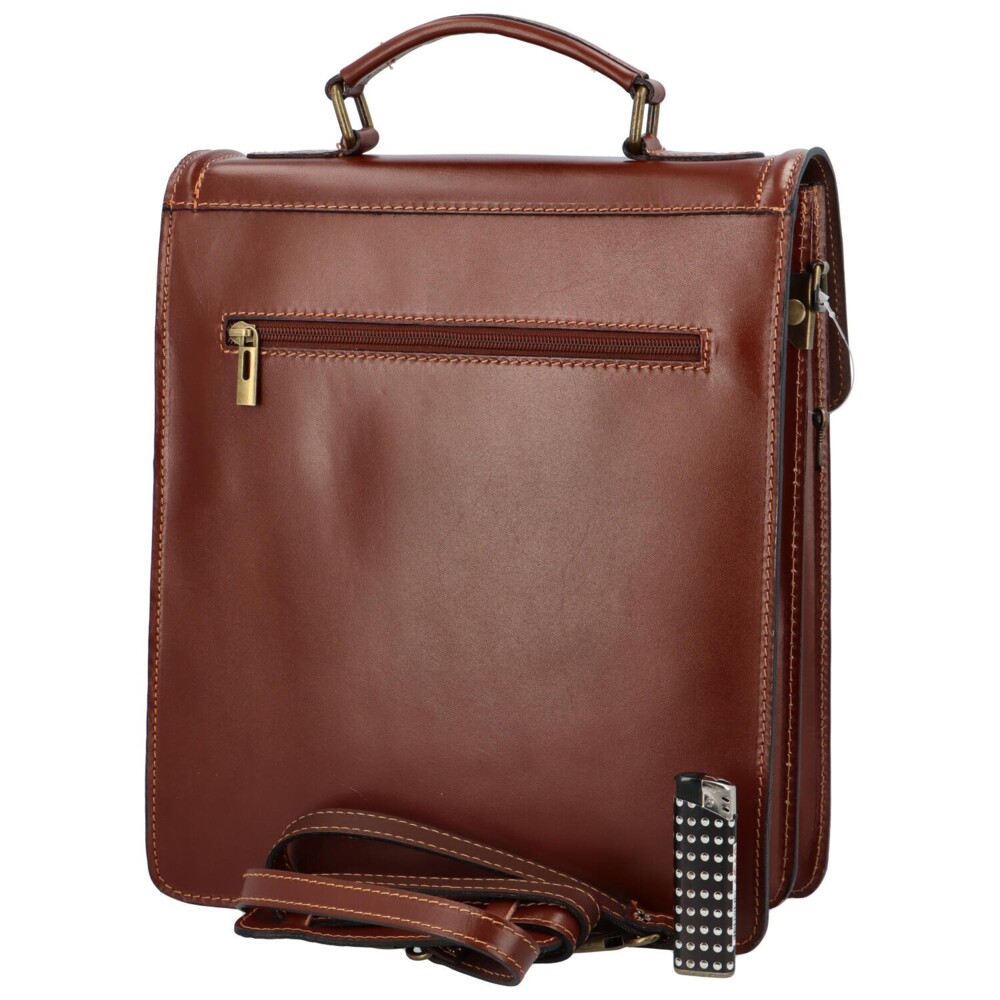 Spoľahnite sa na kožené etue talianskej značky Delami. Či do ruky alebo cez plece, je na vás. Popruh je celokožený s vystužením na plece. Neupierajte si priestor, ktorý v pracovných dňoch určite potrebujete. Atraktívny pánsky model v tmavohnedej farbe! Novinka! Objednajte ešte dnes a vyskúšajte! Vrátiť ju môžete až za 30 dní. Otvára sa chlopňou so sponou, ktorá sa dá zamknúť. Pod ňou májdete tri voľné vrecká. Ďalšie vrecko leží na zadnej strane etue a je na zips. Malá pevná aktovka na každý deň.