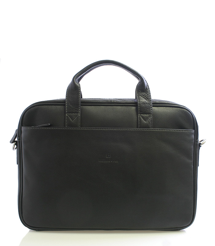 Čierna luxusná kožená taška Hexagona. Elegantná unisex taška na notebook a papiere. Taška je príjemne úzka, veľmi dobre sa nosí v ruke aj cez plece. Súčasťou je odnímateľný, nastaviteľný popruh. Vo vnútri sú priehradky na mobil, ceruzky či vizitky. V hlavnom vrecku je jedna priehradka na notebook s max. rozmermi 35 x 25 cm (13"). Na zadnej strane je jedno vrecko na zips, ale aj vrecko na prevlečenie madla cestovného kufra. Novinka 2015.