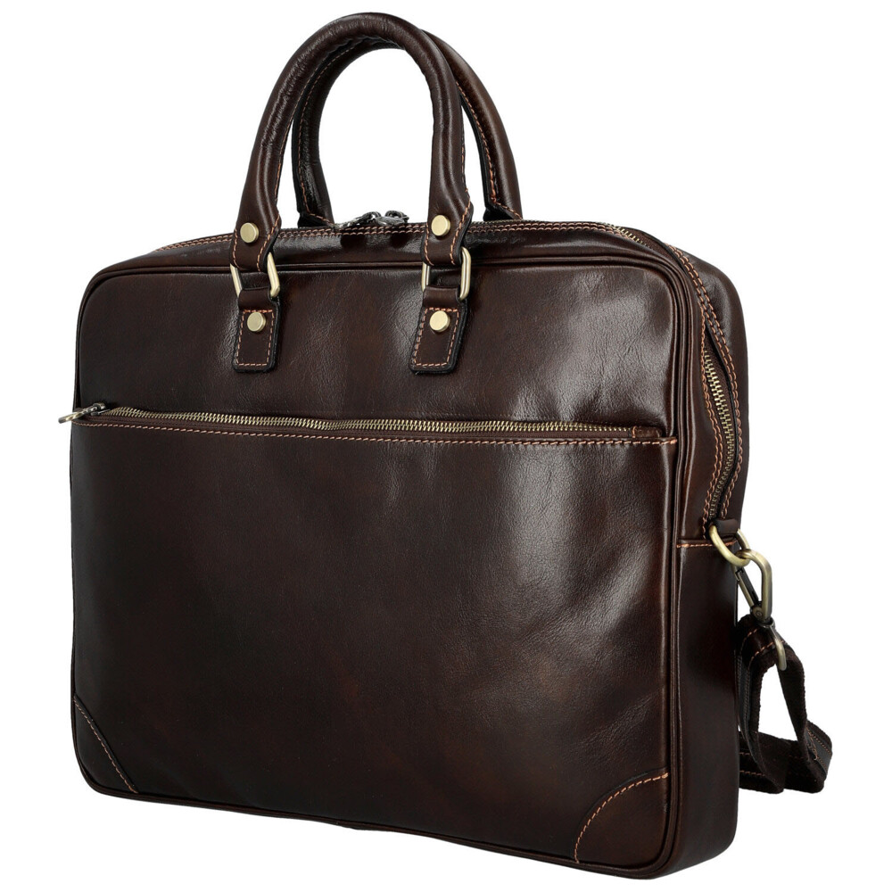Kožená business taška tmavo hnedá - Delami Vera Pelle Evarist