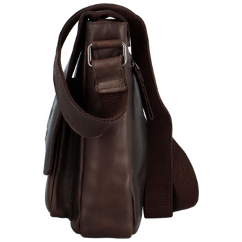 Luxusná hnedá pánska taška od značky Mustang, z prírodnej olejovanej kože. Hlavný priestor tašky sa uzatvára na kovový zips a uprostred je rozdelená látkovou priehradkou. Hlavné vrecko ďalej ponúkne dve voľné, hlboké priehradky a jednu priehradku na zips. Chlopňa tašky drží na magnetický cvok a zdobí ju logo značky. Pod chlopňou je jedna voľná priehradka. Popruh tašky je kožený, podšitý kvalitnou textíliou. Objednajte ešte dnes a vyskúšajte! Vrátiť ju môžete až za 30 dní!