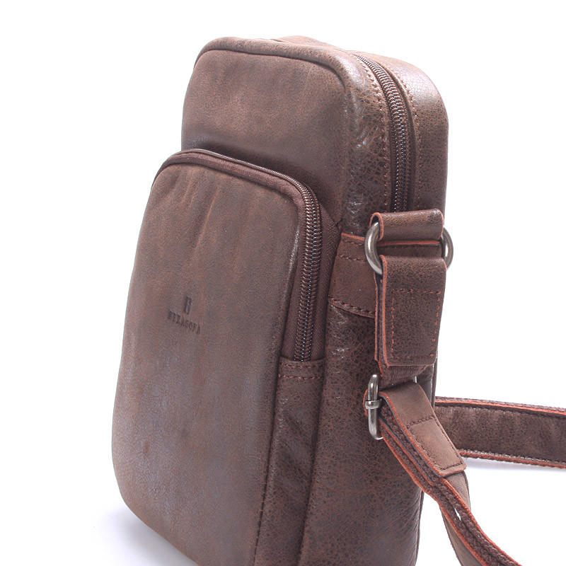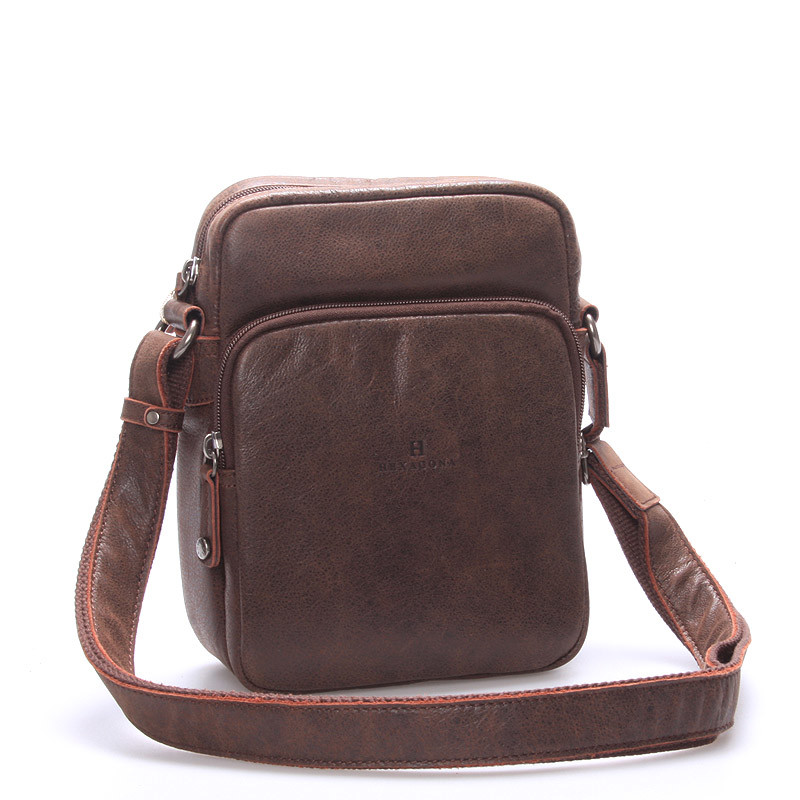 Luxusná pánska kožená taška cez rameno hnedá - Hexagona Carlos