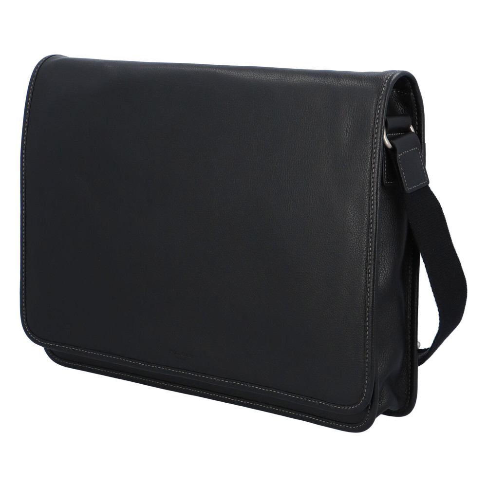 Čierna celokožená taška pre mužov, od značky Hexagona. Luxusný a kvalitný model, ktorý je elegantný a štýlový. Hodiť sa vám bude samozrejme nielen v práci, ale aj v meste. Nosiť ju možno pohodlne cez plece alebo crossbody. Pohodlne sem uložíte spisy, osobné veci aj notebook (max. 36,5 x 25 cm). Taška sa otvára chlopňou s magnetickým nitom, má perfektne lemované a prešívané okraje. Pod chlopňou sú dve veľké vrecká, jedno voľné a jedno so zipsom. Hlavné vrecko sa zapína zipsom a okrem vrecka na notebook tu nájdete väčšie vrecko na zips a menšie voľné kapsičky na osobné veci ako je telefón a prepisovačky. Zadná strana tašky je prešívaná, nechýba tu vrecko so zipsom. Popruh je v kombinácii textilu a kože. Doprajte si skutočne mužskú záležitosť. ▶ Skvelou voľbou bude aj tzv. "Sestra" tejto brašne "Luxusná pánska kožená taška čierna - Hexagona Pierre ".
