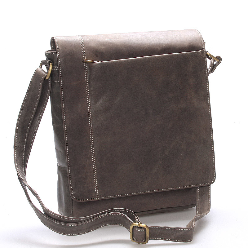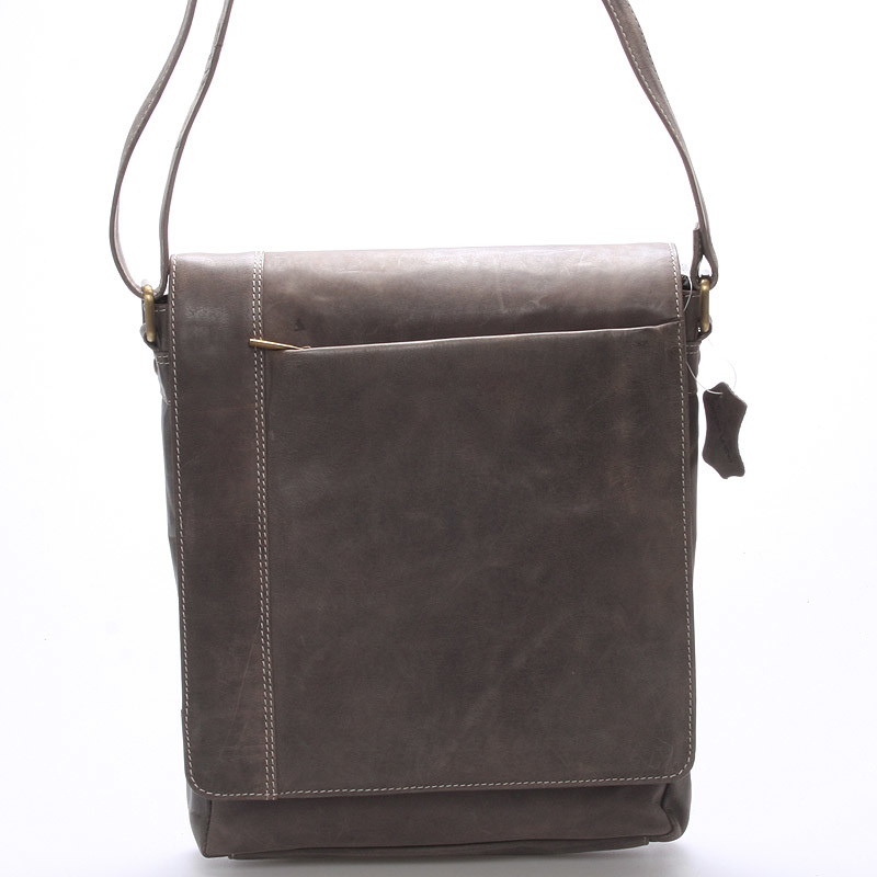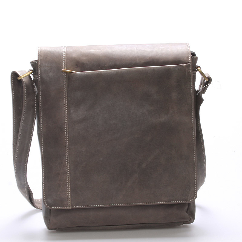 Moderná pánska stredne veľká kožená taška sivá Stephan