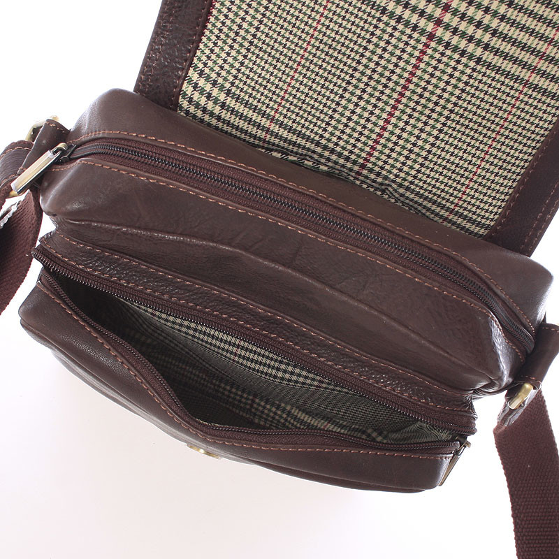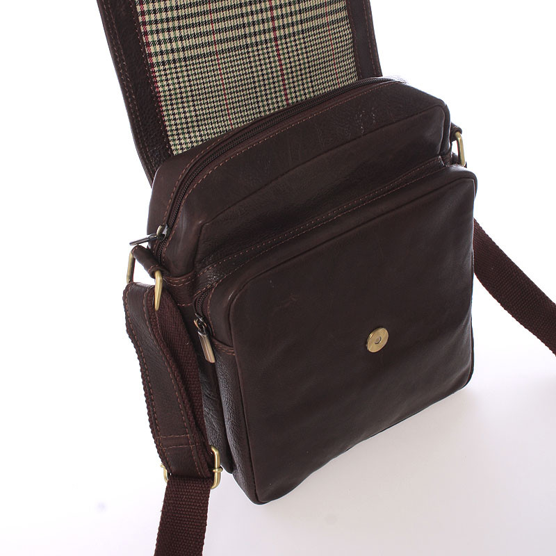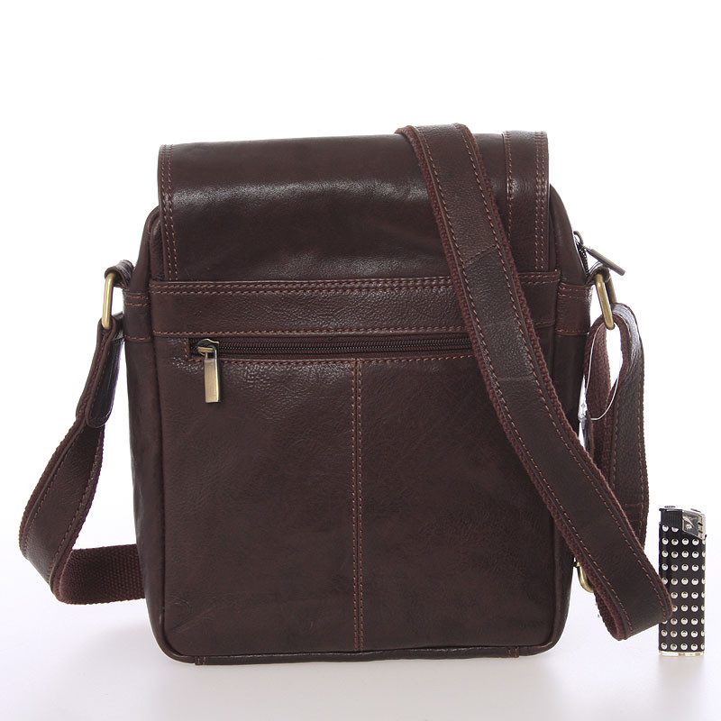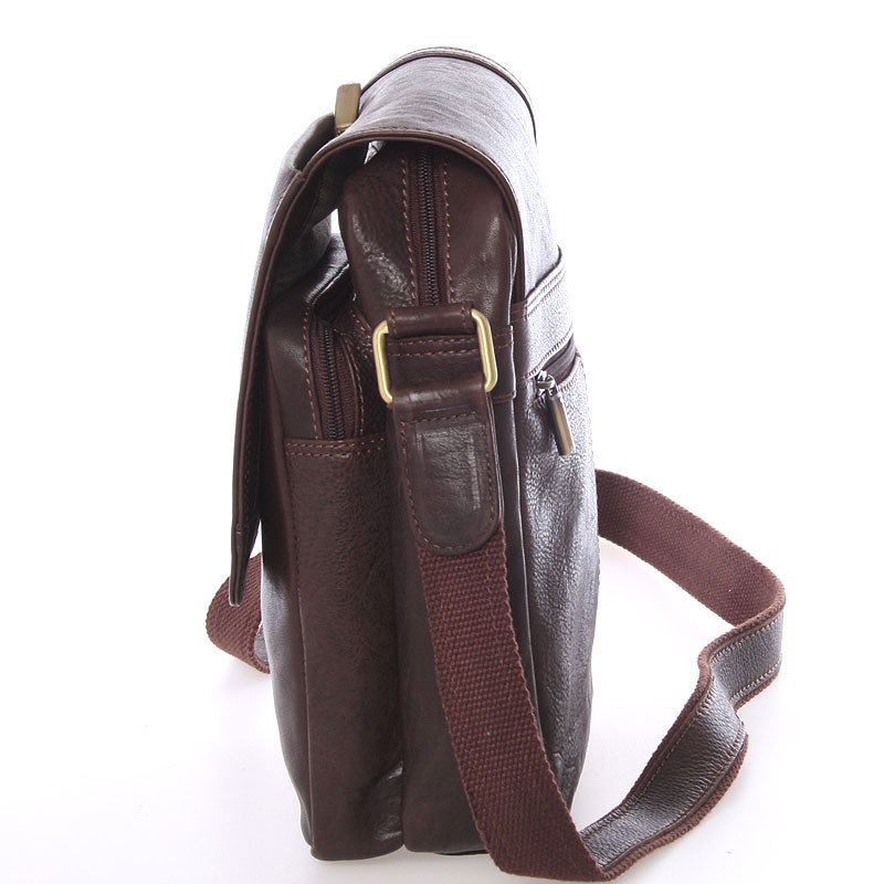 Praktická pánska kožená taška na doklady cez plece od SendiDesign, v hnedej farbe. Táto módna záležitosť poteší hlavne mužov, ktorí idú s dobou a myslia na vzhľad a praktickosť svojho outfitu. Taška sa zatvára príklopkou na magnetický cvoček, na ktorej je menšie vrecko na zips. Pod klopou je jedno väčšie vrecko a hlavné vrecko. Ďalšie kapsičky na drobnosti sú v hlavnom vrecku. Na zadnej strane je menšia kapsa na zips. Popruh je nastaviteľný. Objednajte ešte dnes a vyskúšajte, vrátiť ju môžete až za 30 dní!