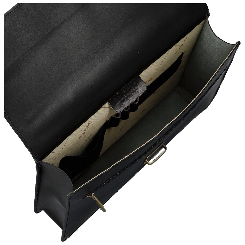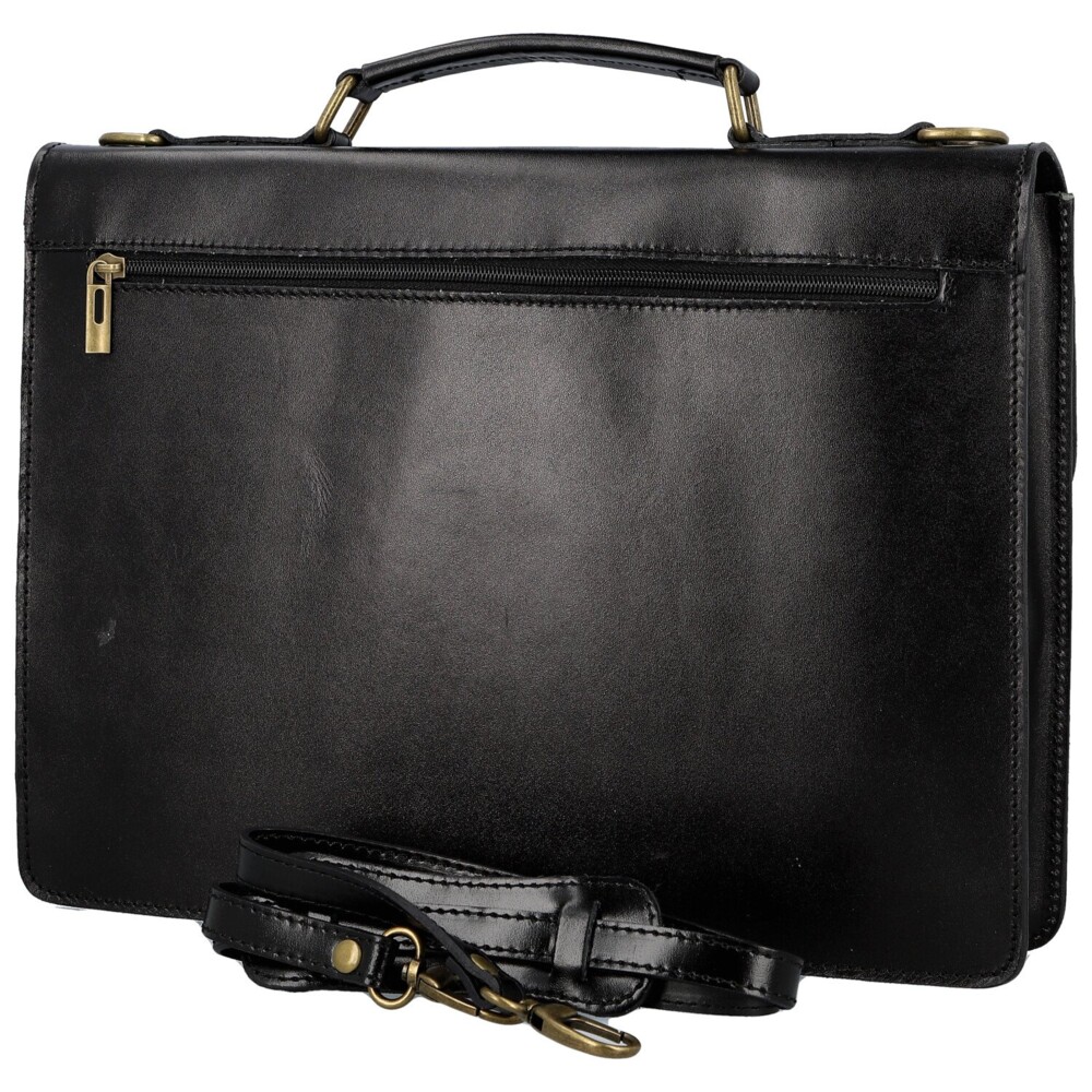 Táto kožená aktovka je dokonalou kombináciou elegancie, kvality a funkčnosti na každodenné profesionálne použitie. Predný poklop, ktorý siaha do polovice prednej strany, je vybavený pevnejším mosadzným zapínaním, ktoré dodáva aktovke sofistikovaný a nadčasový vzhľad. Po otvorení klopy sa odhalí priestranné hlavné vrecko, ideálne pre dokumenty, tablet alebo iné pracovné potreby, a vpredu sa nachádza zipsové vrecko. Na zadnej strane aktovky je praktické zipsové vrecko pre rýchly prístup. Pevné ucho umožňuje pohodlné nosenie v ruke, zatiaľ čo dlhý kožený popruh sa dá pripnúť na elegantné nosenie cez rameno. Mosadzné kovanie dodáva aktovke štýlový, luxusný akcent. Objednajte ešte dnes a vyskúšajte, vrátiť ju môžete až za 30 dní!