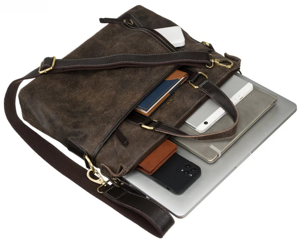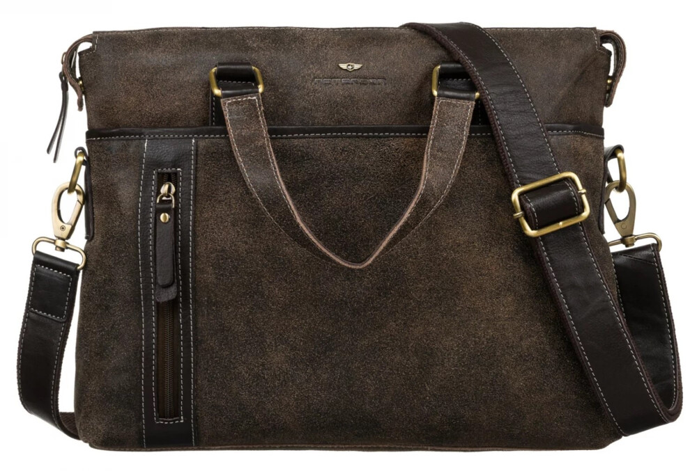 Štýlová pánska business taška z brúsenej kože, ktorá spája eleganciu, kvalitu a funkčnosť. Jej jemne matný povrch s charakterom prírodnej kože pôsobí luxusne, zatiaľ čo kontrastné biele prešitie dodáva taške moderný šmrnc a precízny detail. Hlavné vrecko na zips ponúka dostatok priestoru pre dokumenty aj menšiu elektroniku, vo vnútri nechýbajú praktické vrecká v podšívke pre prehľadné usporiadanie. Vpredu aj vzadu sa nachádzajú otvorené vrecká pre ľahký prístup, doplnené o malé zipsové vrecko a decentné logo na prednej strane. Pevné uši umožňujú pohodlné nosenie v ruke, zatiaľ čo dlhý odnímateľný popruh pridáva na praktickosti. Mosadzné kovanie štýlovo dopĺňa celkový vzhľad a podčiarkuje jej nadčasový charakter. Ojednajte ešte dnes a vyskúšajte, vrátiť ju môžete až za 30 dní!