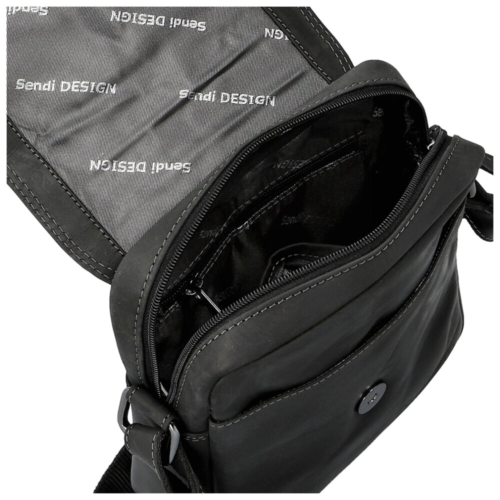 Menšia pánska kožená crossbody taška Sendi Design z kvalitnej brúsenej kože je ideálnym doplnkom pre každodenné nosenie. Jednoduchá a elegantná chlopňa ukrýva hlavné vrecko na zips, v ktorom nájdete praktické postranné priehradky a jedno voľné vrecko na drobnosti. Na zadnej strane tašky sa nachádza ďalšie vrecko na zips, vhodné napríklad na telefón, doklady alebo iné cennosti.