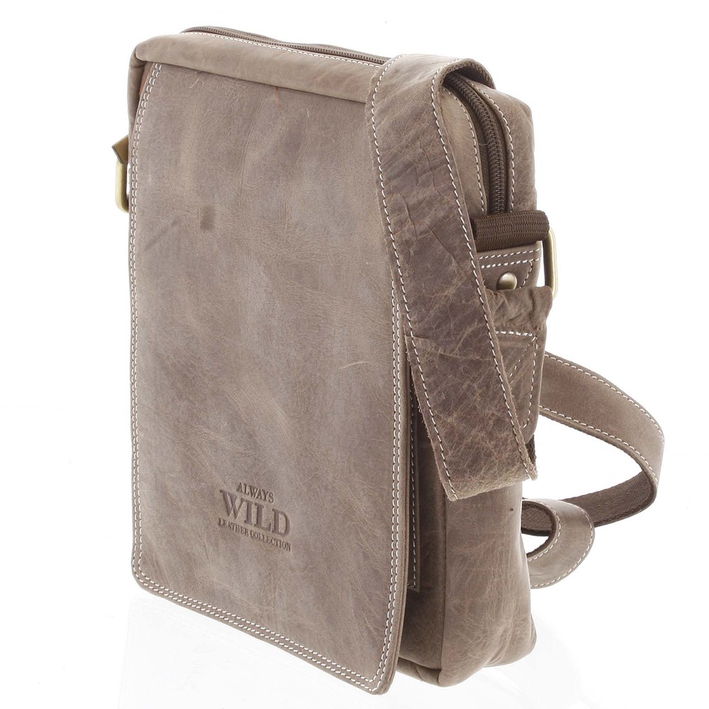Pánska kožená crossbody taška taupe - WILD Yander