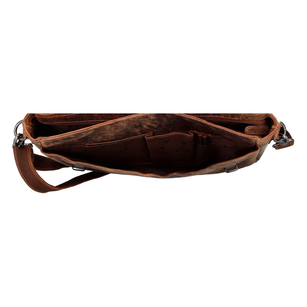 Krásna a luxusná pánska kožená taška GreenWood, pre váš každý pracovný aj voľný deň. Taška sa roztvára na preklop, vo vnútri ponúka dostatok miesta pre všetko, čo musíte mať bežne pri sebe. Predná aj zadná časť, tiež ponúka praktické vrecká, predné voľné pod chlopňou, zadné veľké na zips. Ucho je pevné a krátke do ruky. Dlhý kožený popruh, na pohodlné nosenie ako na ramene, tak do kríža, je na pripnutie. Predný diel zdobí štýlové prešívanie a logo značky. Objednajte ešte dnes a vyskúšajte, vrátiť ju môžete až za 30 dní!