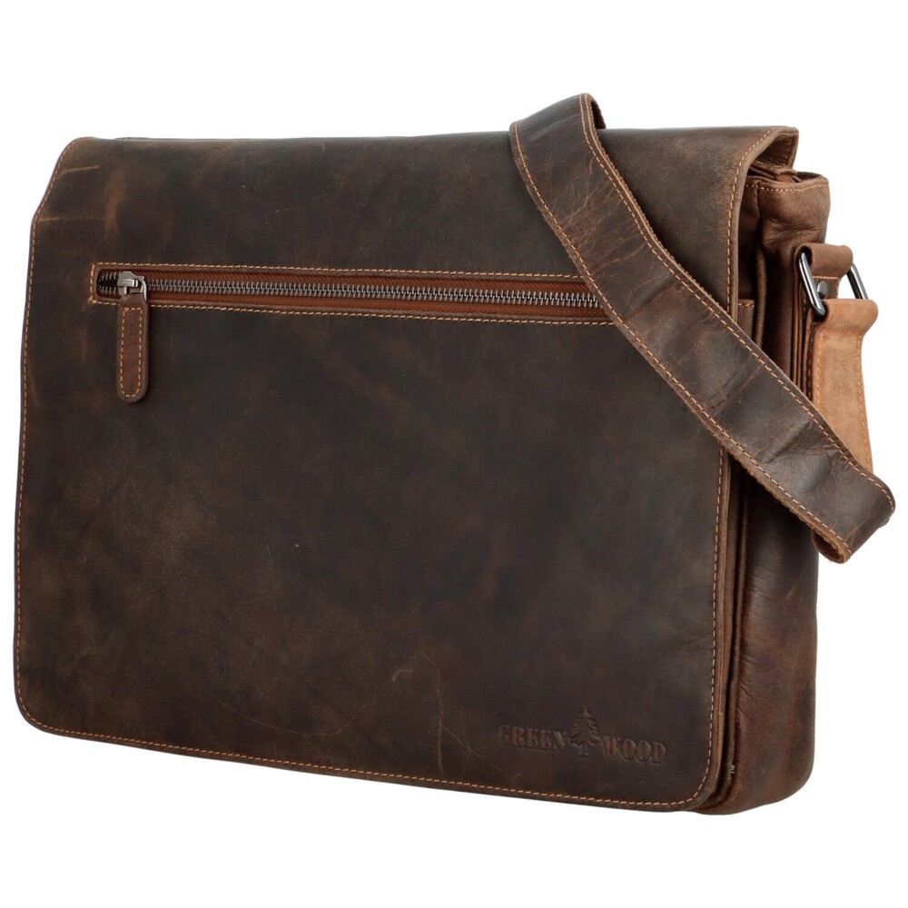 Pokiaľ máte vyššie nároky na tašky a chcete, aby Vám dlho vydržala, zvoľte originalitu, štýlovosť, osobitosť a kvalitu. Veľká kožená pracovná taška od značky Green Wood, je určená na uloženie všetkých potrebných dokumentov. Jej životnosť zaručí kvalitná koža aj spracovanie. Možno ju nosiť pohodlne cez rameno a vďaka nastaviteľnému popruhu aj do kríža. Klopa je uzatvárateľná dvoma kovovými cvočkami a vo vnútri nájdete mnoho úložného priestoru. Pod chlopňou je samostatné vrecko na zips aj otvorené vrecko. Z vonkajších strán navyše vrecká na zips na uloženie vecí, ktoré potrebujete mať stále po ruke. Na prednej strane logo značky. Objednajte ešte dnes a vyskúšajte, vrátiť ju môžete až za 30 dní!