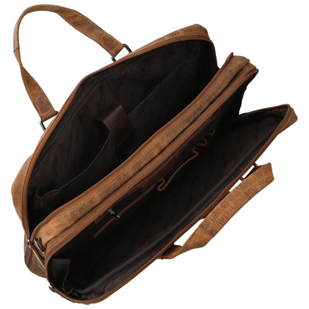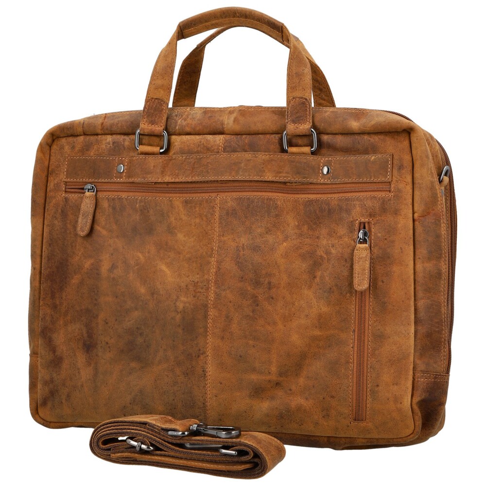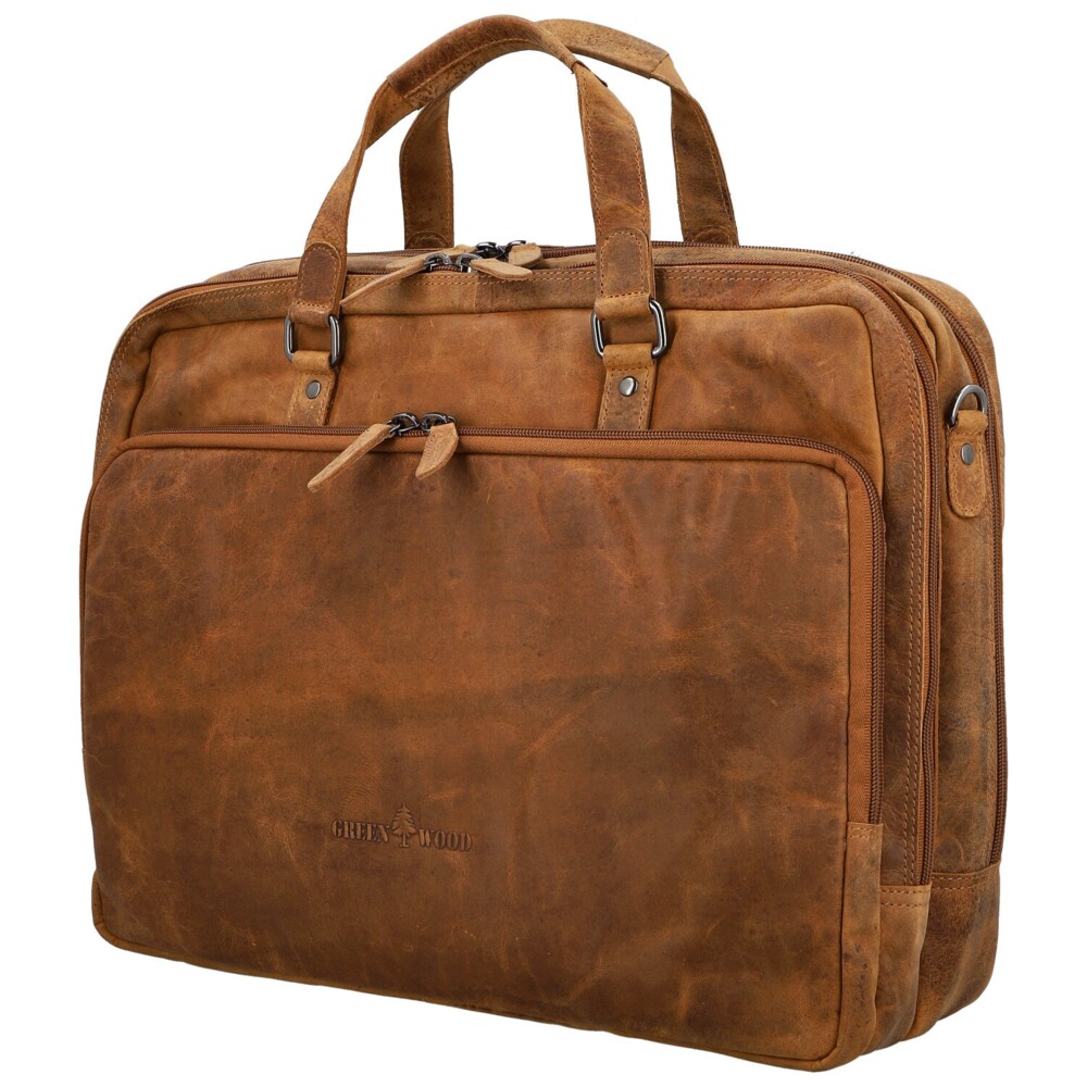 Krásna a luxusná pánska kožená taška GreenWood, pre váš každý pracovný aj voľný deň. Pri ceste do práce, na bežné denné aj víkendové chvíle, všade vám bude skvelým a praktickým doplnkom a Vy budete mať svoje osobné veci vždy po ruke. Taška sa otvára zipsami, vo vnútri ponúka dostatok miesta, pre všetko, čo musíte mať bežne pri sebe. Predná aj zadná časť, tiež ponúka praktické vrecká. Uchá sú pevné a krátke do ruky. Dlhý kožený popruh, na pohodlné nosenie ako na ramene, tak do kríža, je na pripnutie. Predný diel zdobí štýlové logo značky. Objednajte ešte dnes a vyskúšajte, vrátiť ju môžete až za 30 dní!