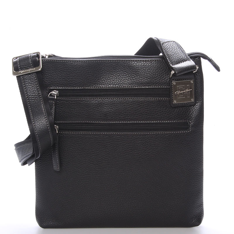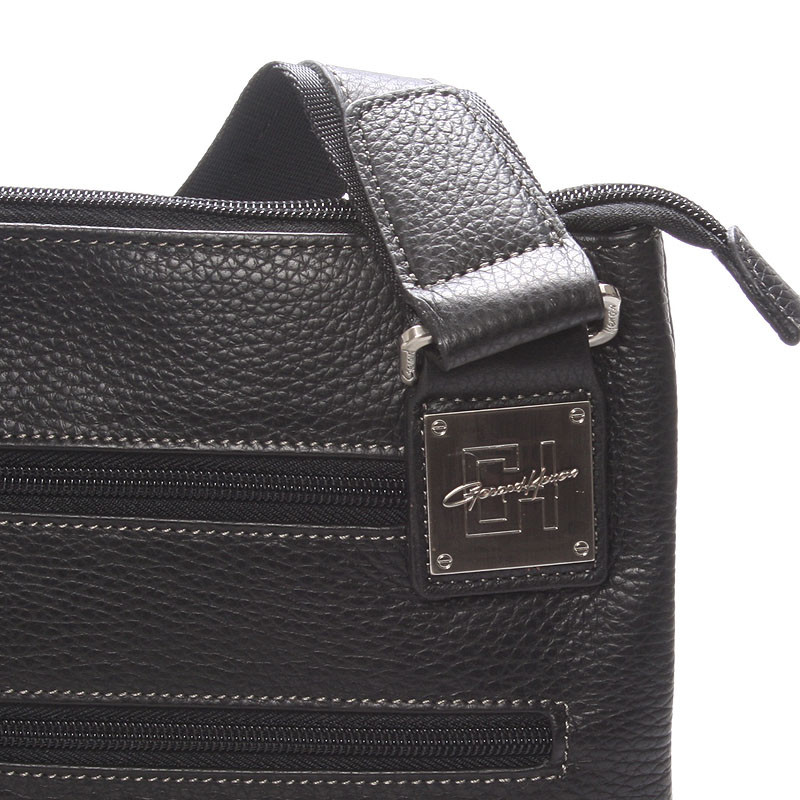 Čierna kožená taška cez rameno Gerard HENON pre mužov. Je neformálna, ale pritom aj elegantná. Taška je menšej veľkosti z hovädzej kože. Má hlavné vrecko, ktorá sa zatvára zips. Vo vnútri je hlavné vrecko a ďalšie menšie vrecká na drobnosti. Na prednej strane sú dve menšie vrecká na zips a na zadnej strane je ďalšie vrecko na zips. Novinka. Objednajte ešte dnes a vyskúšajte, vrátiť ju môžete až do 30 dní!