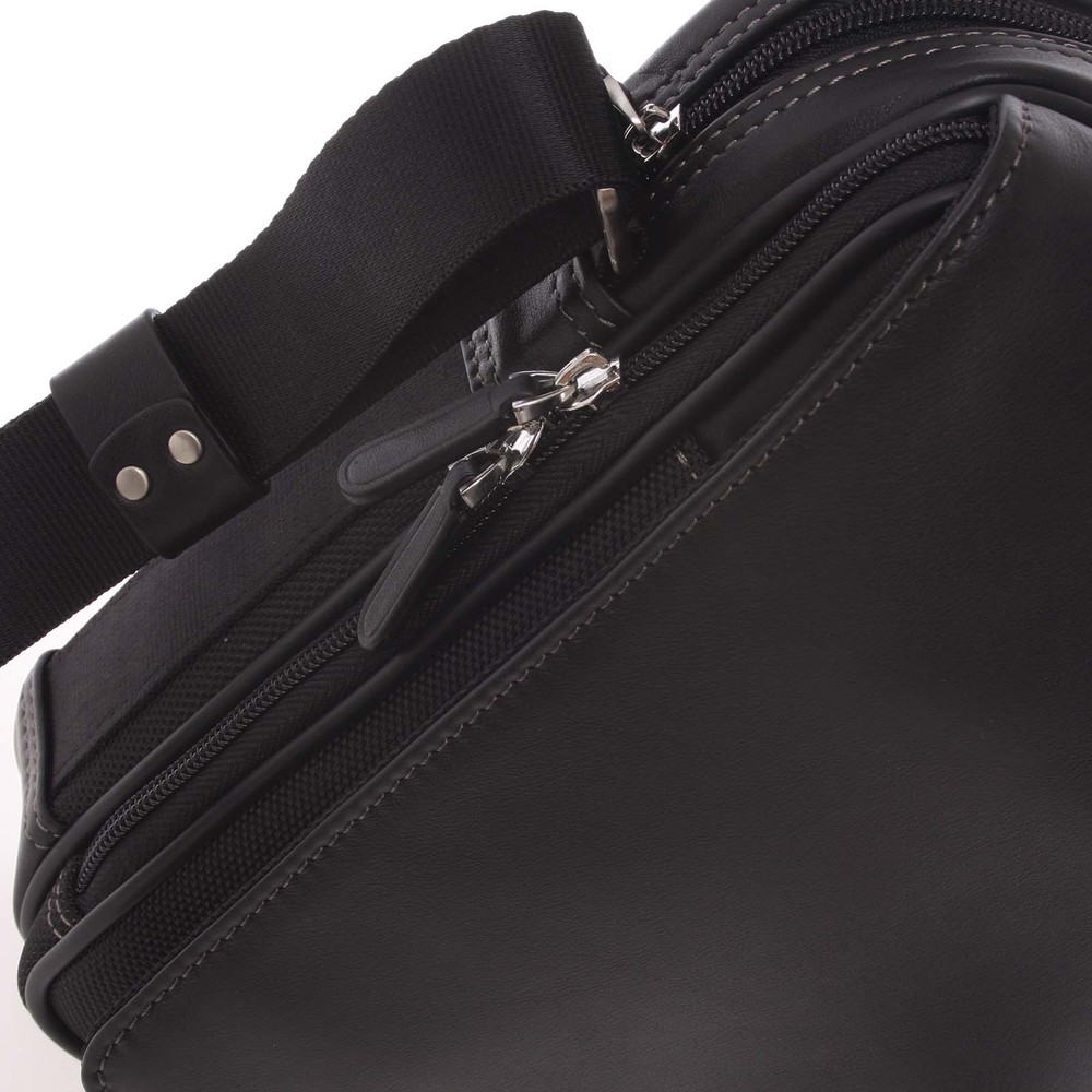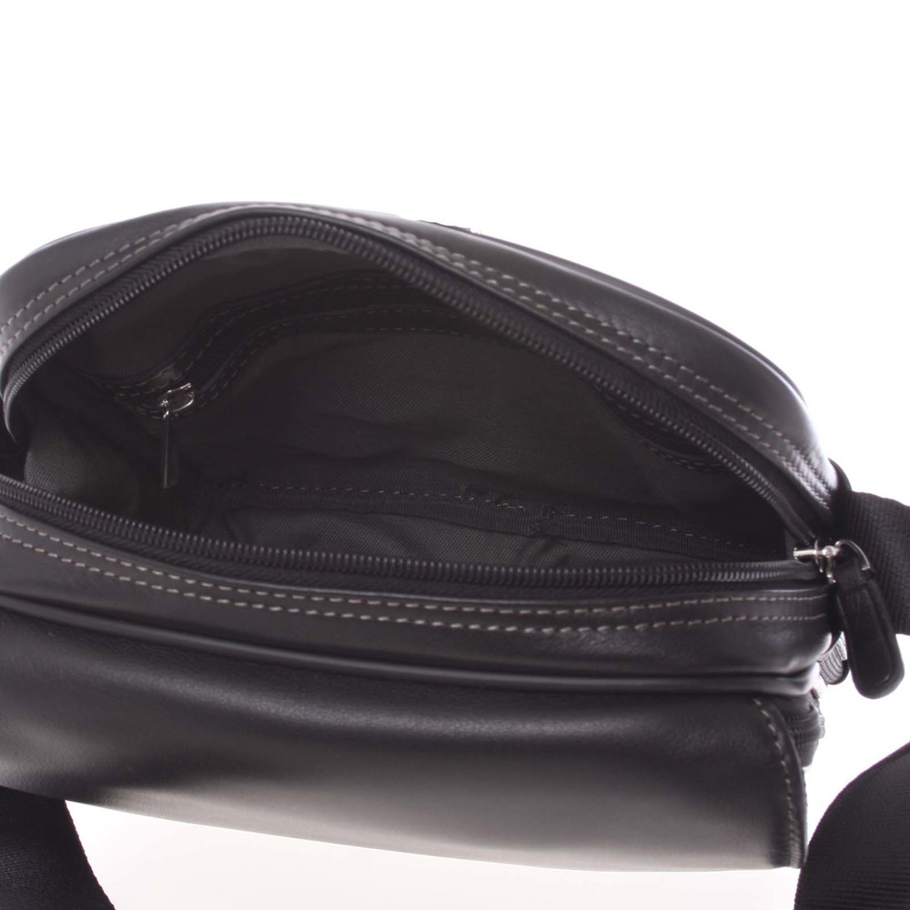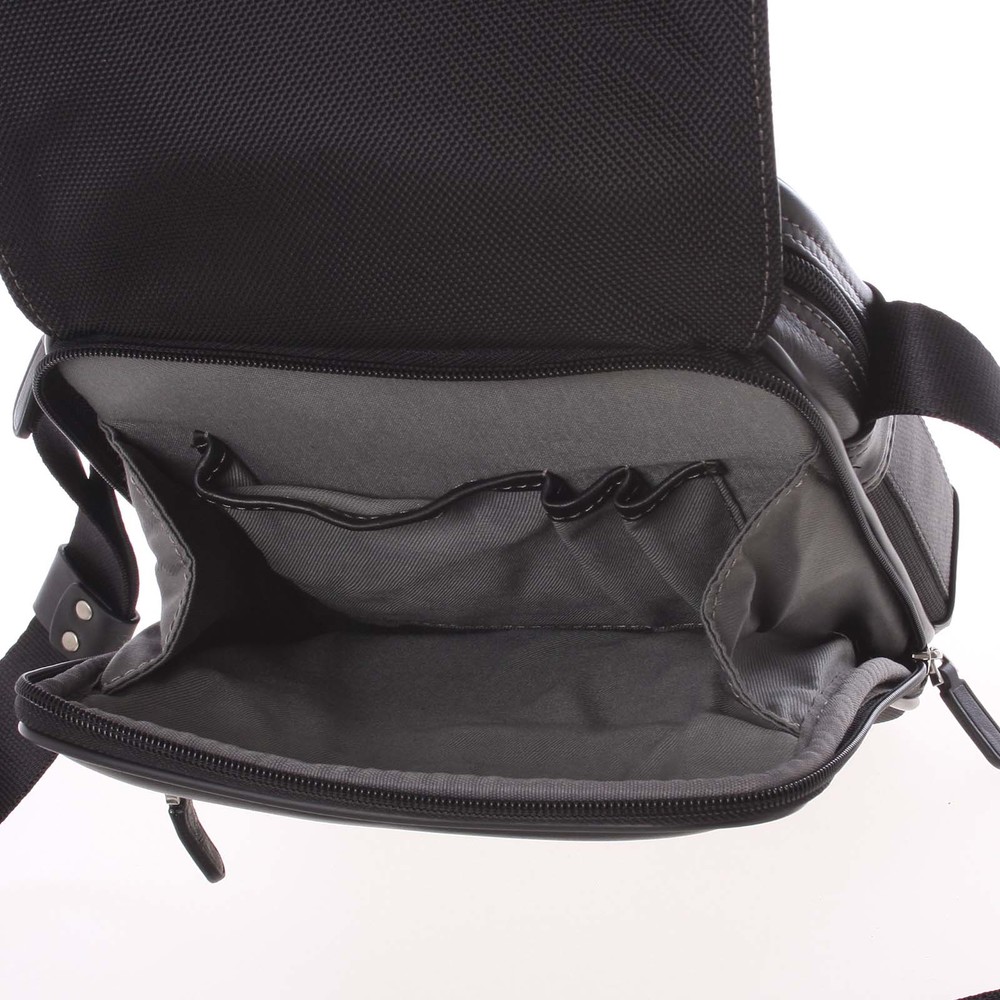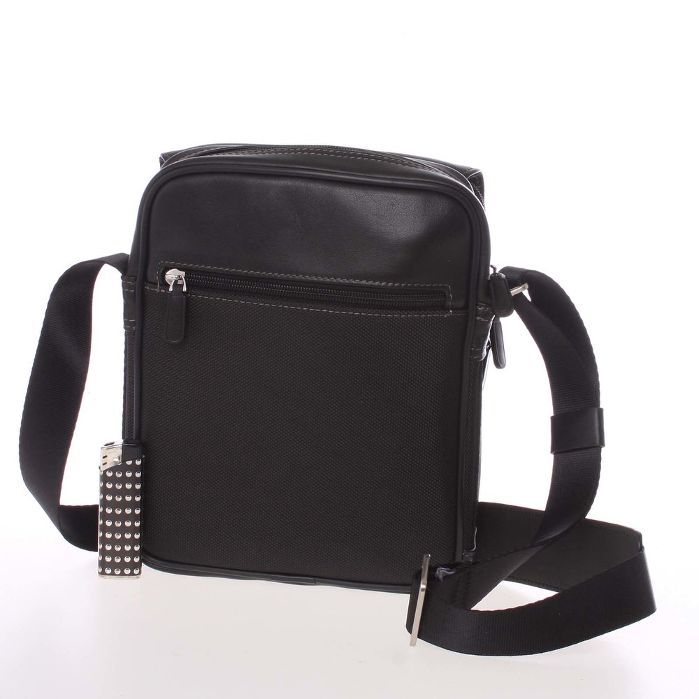 Čierna elegantná pánska kožená menšia taška na doklady a osobné veci od značky Gerard HENON v kombinácii s veľmi kvalitným nylonom. Chlopňa sa otvára pomocou magnetického cvočku, pod ňou je jedno väčšie a jedno menšie vrecko, obe na zips. Na zips je aj hlavné vrecko vo vnútri ktorého je okrem dostatku priestoru menšie vrecko so zipsom na cennosti. Kabelke nechýba vrecko na zadnej strane. Popruh je z pevnej látky s koženými detailmi a posuvnou výstužou na rameno. Novinka! Objednajte ešte dnes a vyskúšajte, vrátiť ju môžete až do 30 dní!