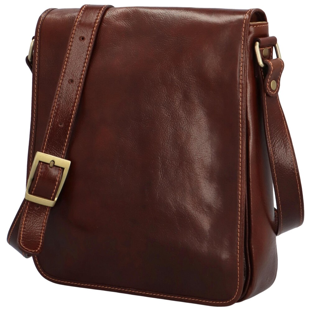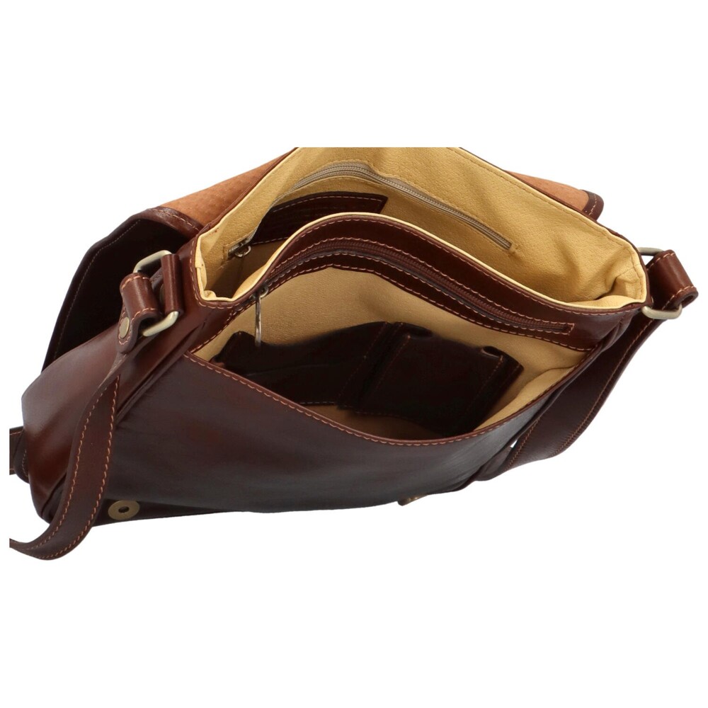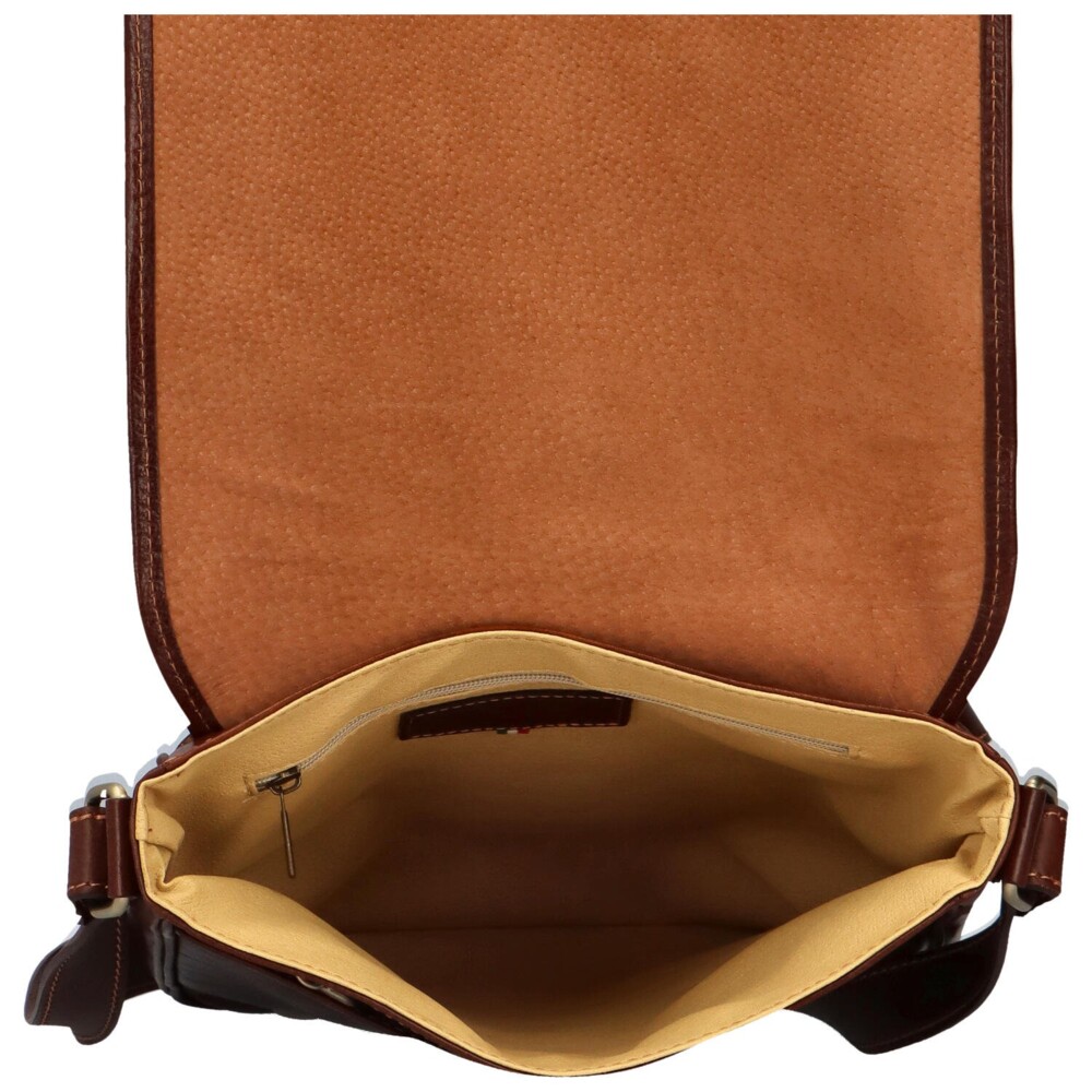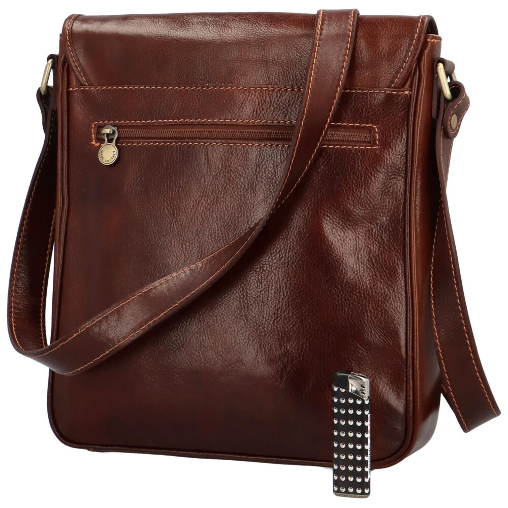Príjemná stredná hnedá pánska crossbody z kvalitnej kože, od Delami. Disponuje bohatým úložným priestorom a chlopňou s uzatvárateľným kovovým cvočkom. Pod ňou sú dve otvorené vrecká a obe ponúkajú vrecko na zips v podšívke. Je možné do nej uložiť všetko potrebné, čo musíte mať vždy po ruke. V zadnej časti je vrecko na zips. Štýl dodáva taške jej lesk. Pohodlnosť nosenia tašky umocňuje nastaviteľný popruh. Objednajte ešte dnes a vyskúšajte! Vrátiť ju môžete až do 30 dní!