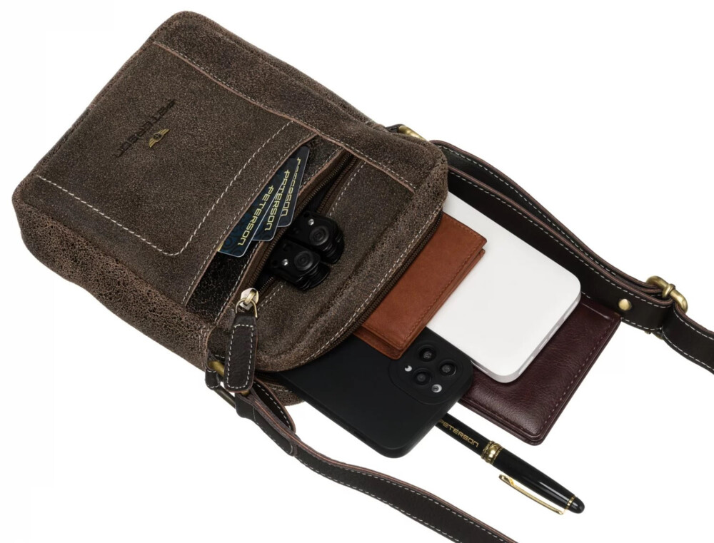 Štýlová a nadčasová pánska crossbody taška z brúsenej kože, ktorá zaujme svojim prirodzene elegantným vzhľadom aj praktickosťou. Prednú stranu zdobí menšie zipsové vrecko, pod ním otvorené vrecko a decentné logo značky, ktoré podčiarkuje jej kvalitné spracovanie. Zadné zipsové vrecko ponúka priestor na drobnosti, ktoré chcete mať vždy po ruke. Hlavné vrecko na zips skrýva prehľadne riešený interiér s vreckami v podšívke. Dlhý nastaviteľný popruh zaisťuje pohodlné nosenie cez rameno. Mosadzné kovanie dodáva taške vintage nádych a zvýrazňuje charakter brúsenej kože. Ojednajte ešte dnes a vyskúšajte, vrátiť ju môžete až za 30 dní!